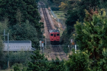 ここらあたりは、基本的な風景は何十年も変わっていない。ひとつだけ残念なのは、ここをモクモク走っていた蒸気機関車がもう見られないことだ。イベント列車で良いから走らせて欲しいと思ったりもするが、大勢の人が押し寄せてくるだろうから、そういうのは嫌だという天の邪鬼なジレンマ。キハ40系も結構老朽化しているので近い将来見ることができなくなりそうだ。