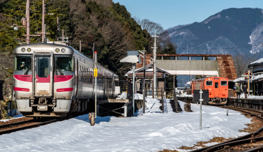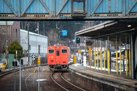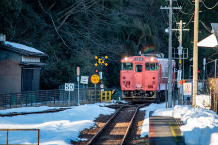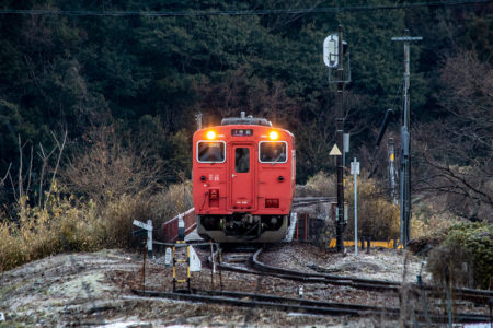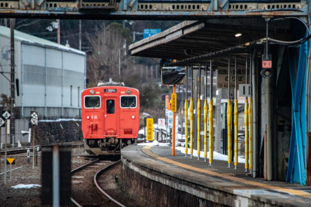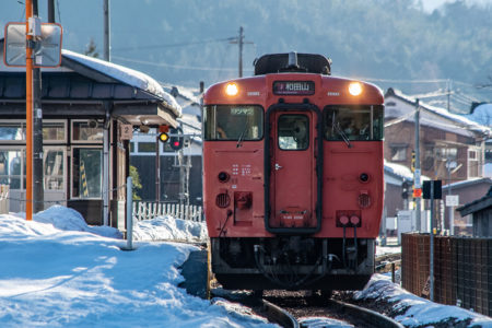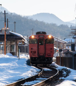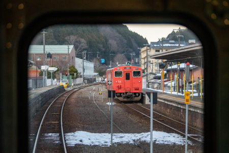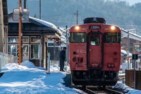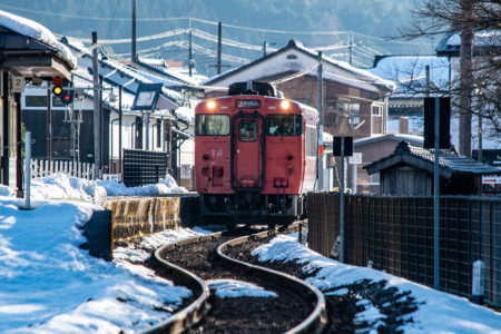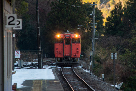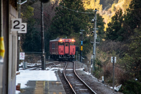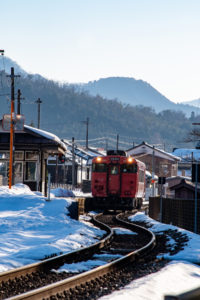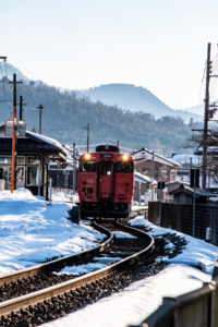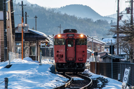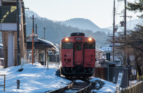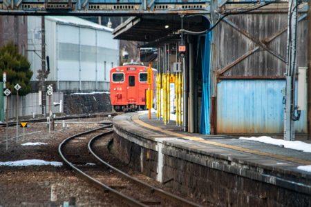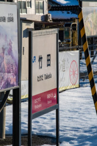 日本のマチュピチュとして有名になった竹田城跡のふもとにある竹田駅付近は、古民家やレトロな建物を生かしたお店があってさすが観光地で景色が良い。竹田駅も昔ながらの重厚な作りで日本昔話にでてきそうな建物だ。Wikiによると開業当時のまま使われているそうだ。12/26の大雪の日に来たときには、一面真っ白で何も見えなかった。かつては真ん中にもう1本線路があったが撤去されている。駅舎の中もレトロな良い雰囲気で、こういう建物は長く残して欲しい。