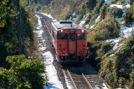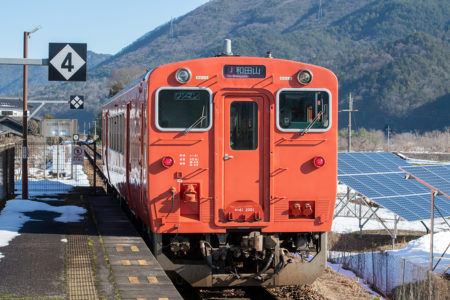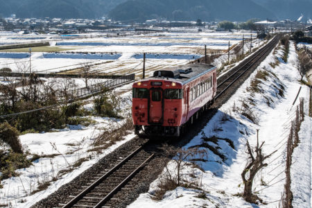 このあたりは、比較的平坦なためか、列車は結構なスピードで通過していく。竹田寄りにあるかつては農道だったかのような跨線橋も良い風情をしているが、これを入れて撮る場所が見つからなかった。昔なら犬走りを歩いて良い場所に行けたのだが今はそれはできない。昔と比べて、写真を撮れる場所はずいぶん少なくなっている。