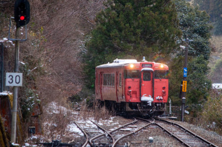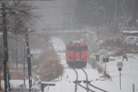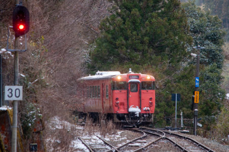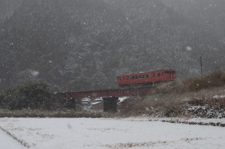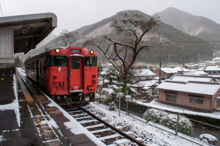 逆方向のお隣の長谷は山あいの静かな無人駅で、何とも言えない風情のある駅なのだ。実はSLがいた頃にはこの区間に来たことがなく、数年前に初めて降り立ち大変悔しい思いをした。とはいえ、今でも佇まいはかわらず、国鉄色の気動車がよく似合う。生野-長谷間の風景も基本的には、昔、写真で見たものと変わらない。SLがいないだけだ。半世紀の時間が経っていることを考えると逆に凄いことかも知れない。