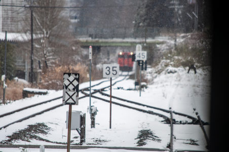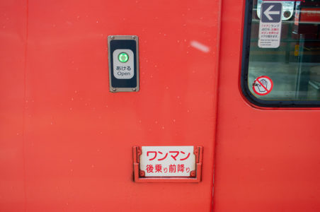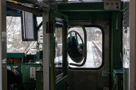 生野駅が右側通行なのは、線路の配置が新井側から左通行で入ろうとすると坂を登り切ったところで速度を落とさなければならず、それによる失速を回避するためだったらしい。線路のレイアウトを見ると非常に納得の行く話だ。SLがいなくなった今もそのままなのは気動車でも事情が同じなのだろうか。