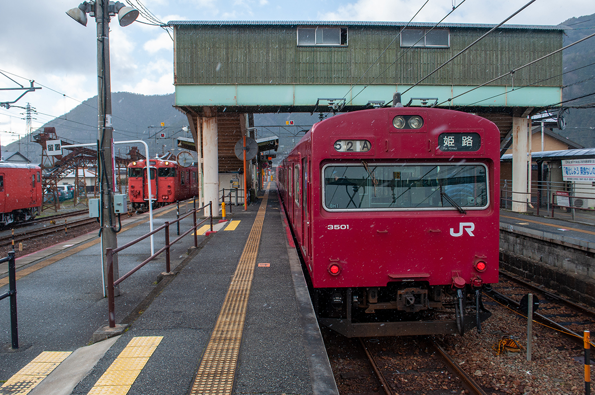 そんな線区なので、まだSLがいた頃の風情が残っている。残念な事に生野駅は、無人になってヤードもなくなり様変わりはしてしまったが、未だに右側通行であり跨線橋やホーム周辺は昔のもので当時の風情が残っている。