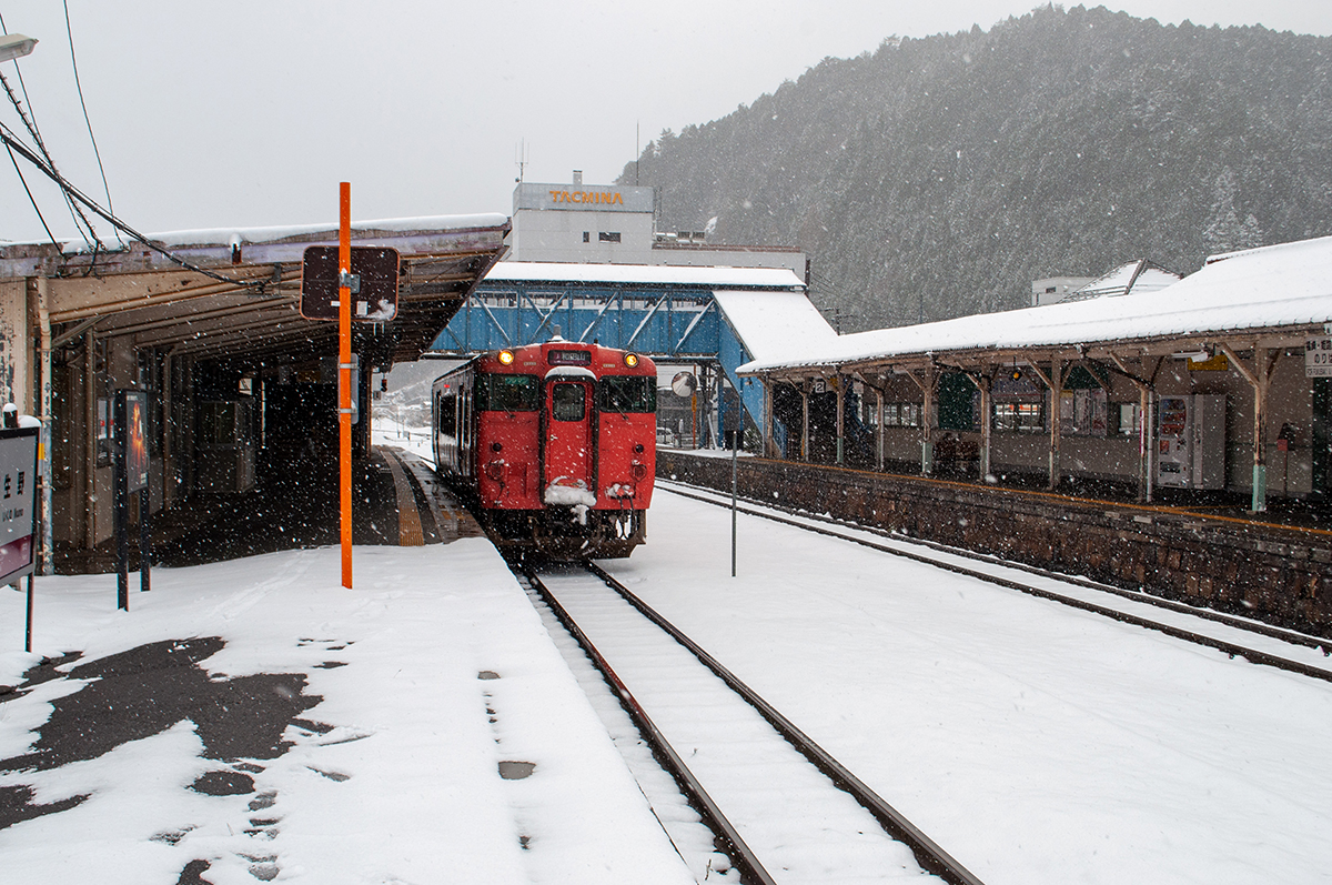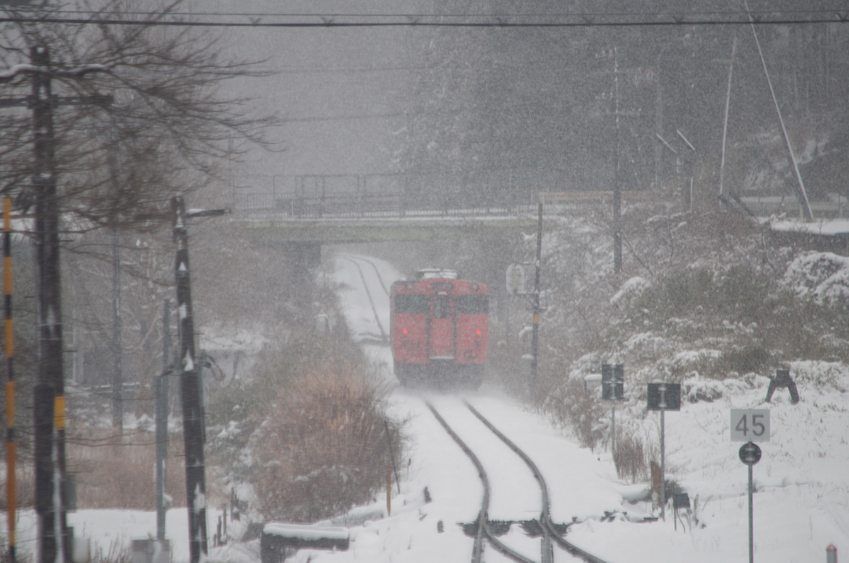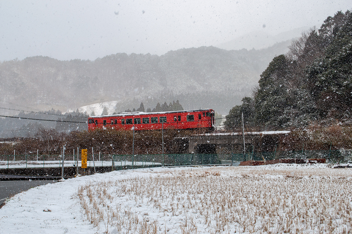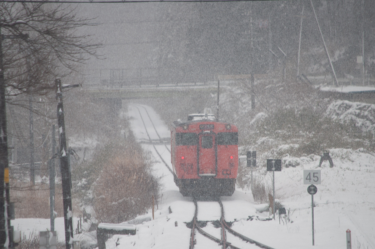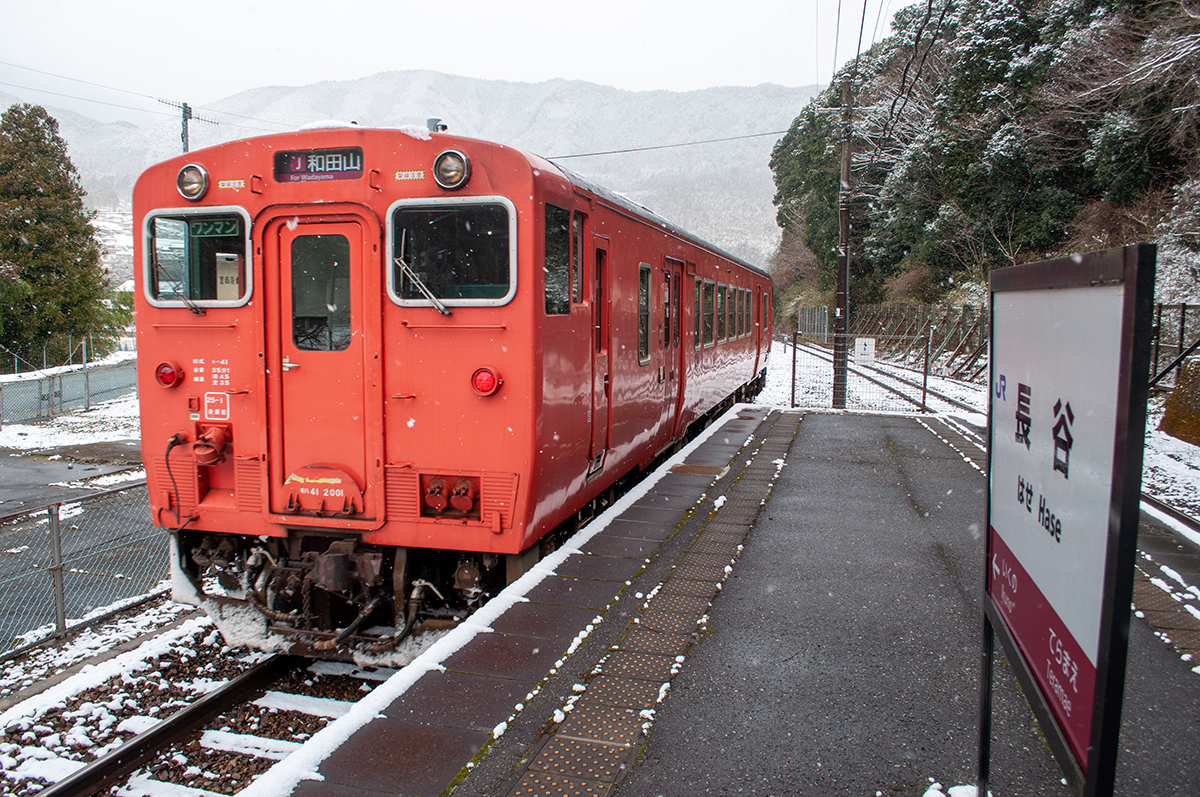 逆方向のお隣の長谷は山あいの静かな無人駅で、何とも言えない風情のある駅なのだ。実はSLがいた頃にはこの区間に来たことがなく、数年前に初めて降り立ち大変悔しい思いをした。とはいえ、今でも佇まいはかわらず、国鉄色の気動車がよく似合う。生野-長谷間の風景も基本的には、昔、写真で見たものと変わらない。SLがいないだけだ。半世紀の時間が経っていることを考えると逆に凄いことかも知れない。