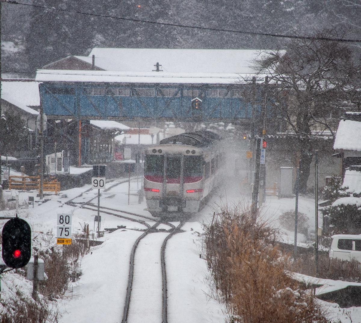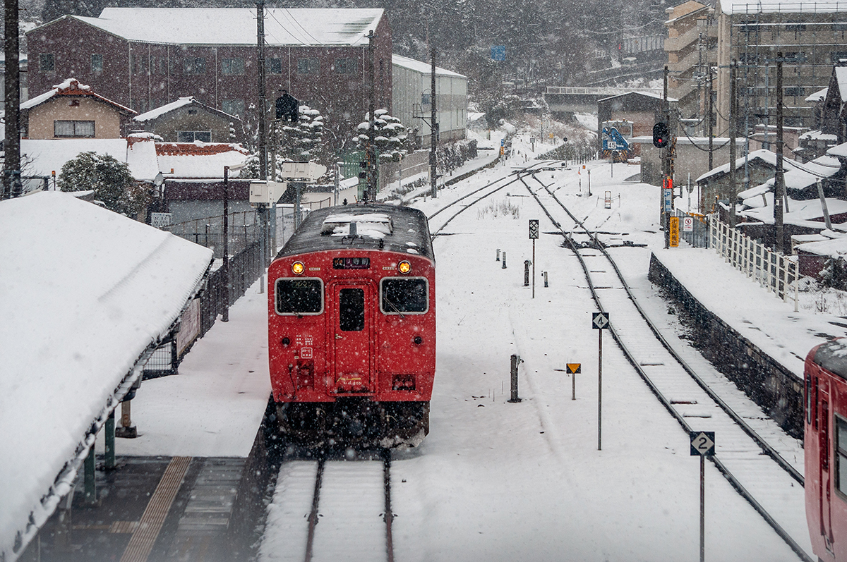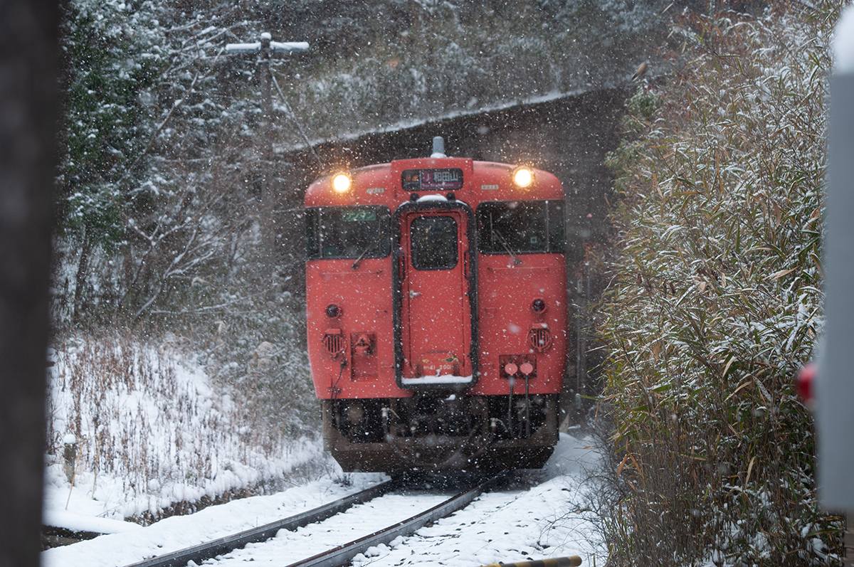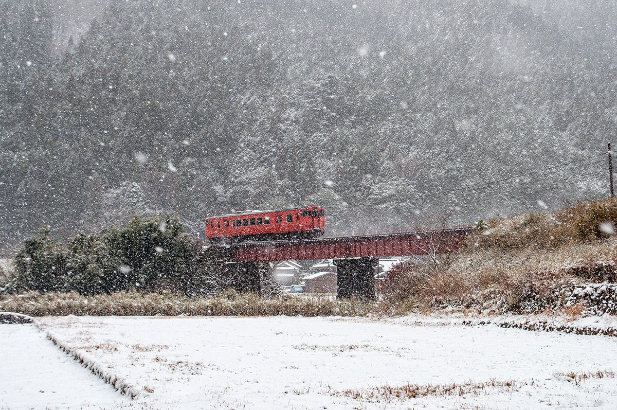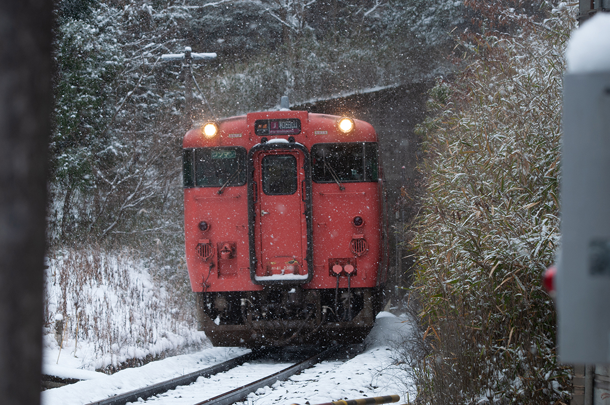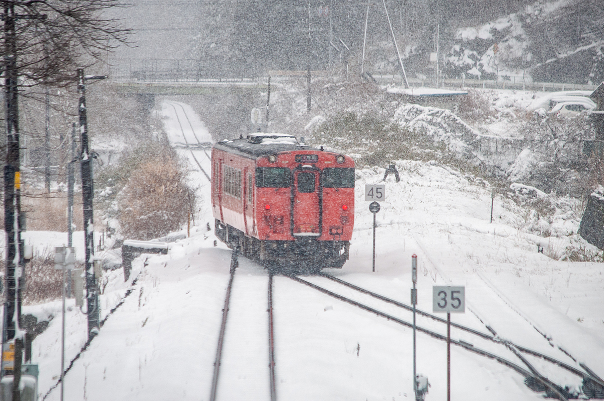 逆方向のお隣の長谷は山あいの静かな無人駅で、何とも言えない風情のある駅なのだ。実はSLがいた頃にはこの区間に来たことがなく、数年前に初めて降り立ち大変悔しい思いをした。とはいえ、今でも佇まいはかわらず、国鉄色の気動車がよく似合う。生野-長谷間の風景も基本的には、昔、写真で見たものと変わらない。SLがいないだけだ。半世紀の時間が経っていることを考えると逆に凄いことかも知れない。