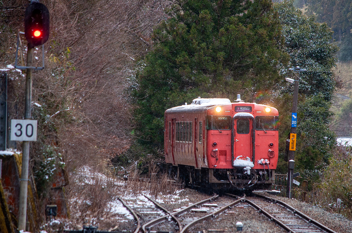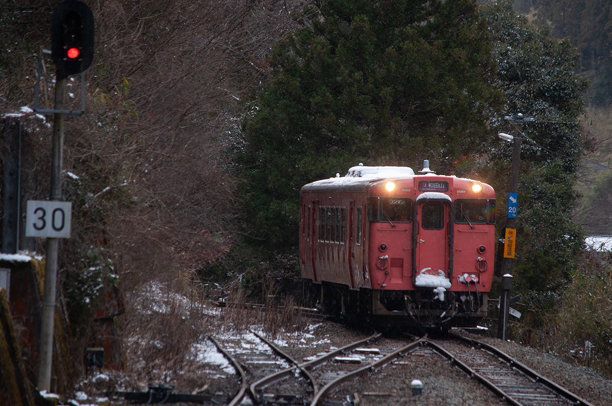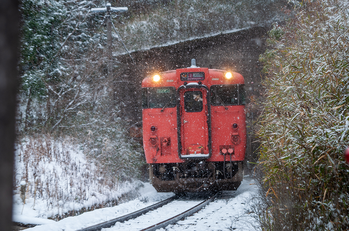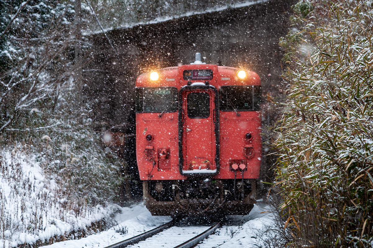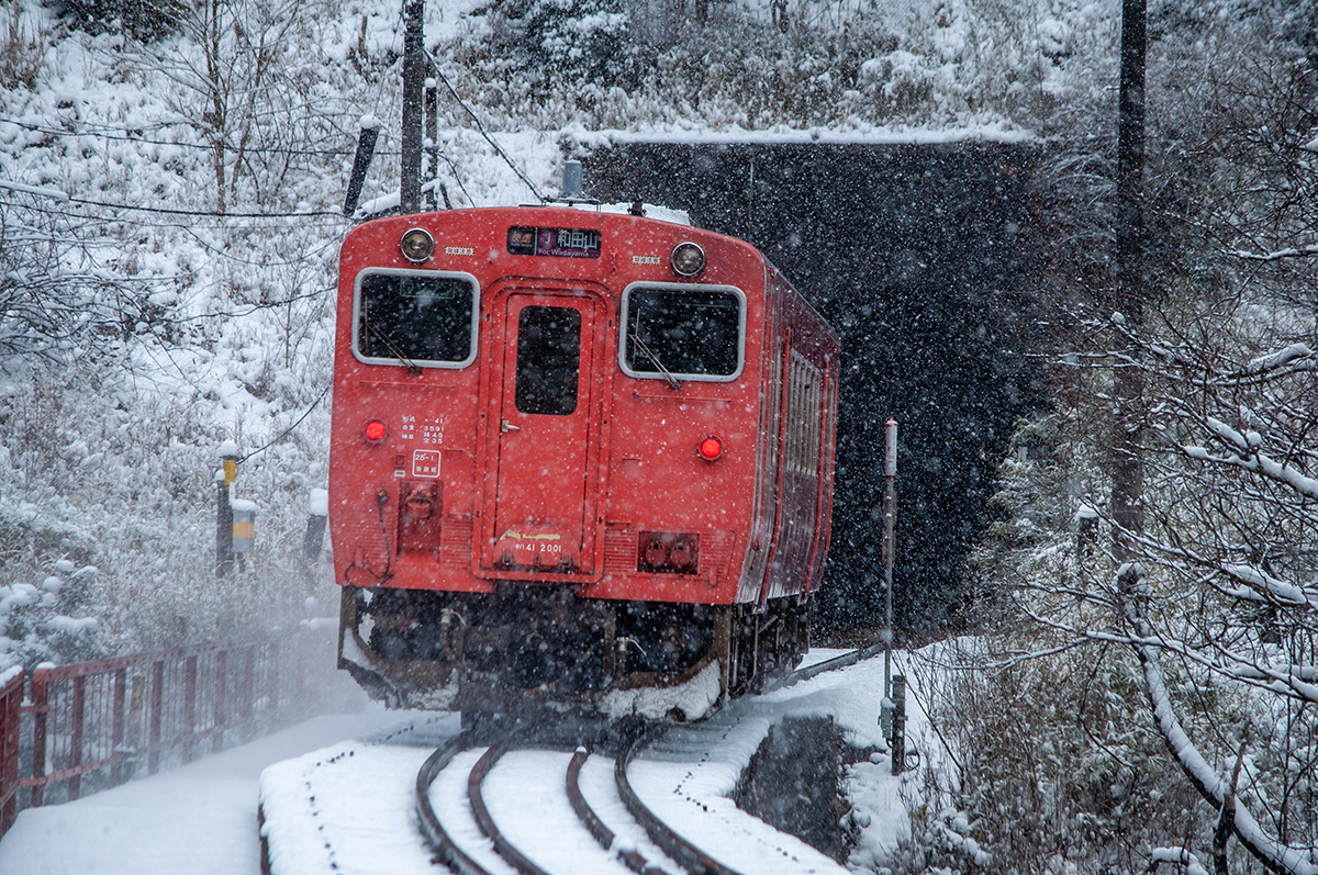 逆方向のお隣の長谷は山あいの静かな無人駅で、何とも言えない風情のある駅なのだ。実はSLがいた頃にはこの区間に来たことがなく、数年前に初めて降り立ち大変悔しい思いをした。とはいえ、今でも佇まいはかわらず、国鉄色の気動車がよく似合う。生野-長谷間の風景も基本的には、昔、写真で見たものと変わらない。SLがいないだけだ。半世紀の時間が経っていることを考えると逆に凄いことかも知れない。