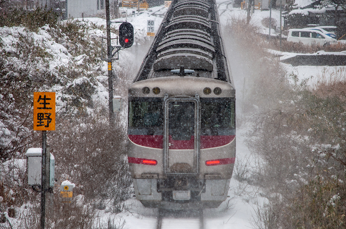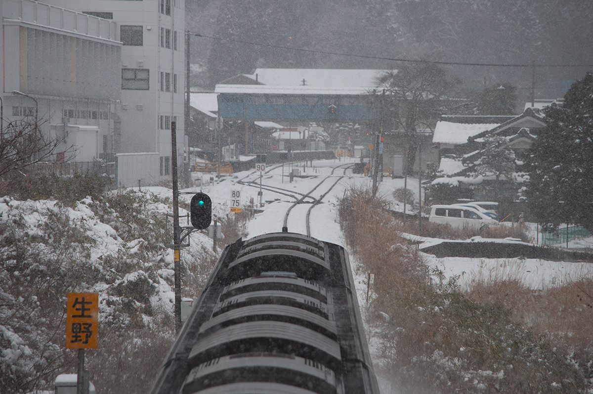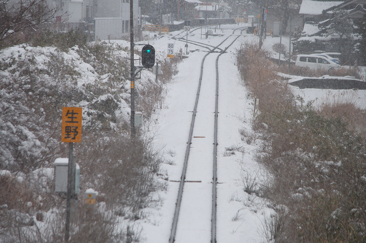 生野駅は、駅を出発したらすぐに新井方面への25パーミルの下り坂になっていて目に見えて急坂であるのが面白い。すぐにトンネルであるため、かつてはこのトンネルから煙を噴き上げながらでてくるC57の写真もよく見られた。