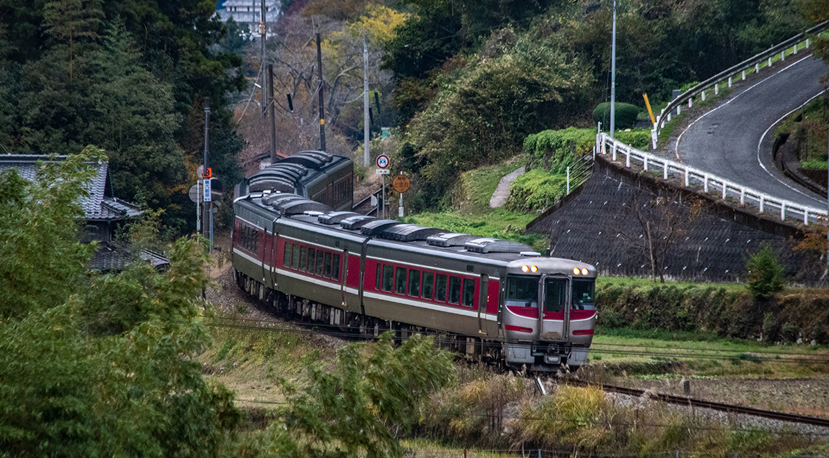 この時期、播但線の特急「はまかぜ」は、朝夕に山陰のカニ客用「カニカニはまかぜ」という臨時列車が走っている。「カニカニエキスプレス」という旅行商品があるのだ。関西人は本当にカニ好きだ(笑)それに加え、普段は3両しか繋いでいない「はまかぜ」が6両編成になっている。6両編成のはまかぜは見応え撮りごたえがある。