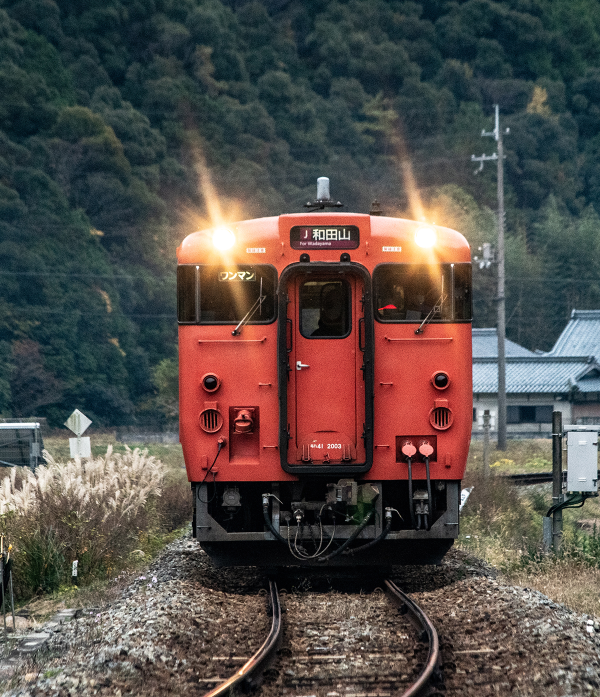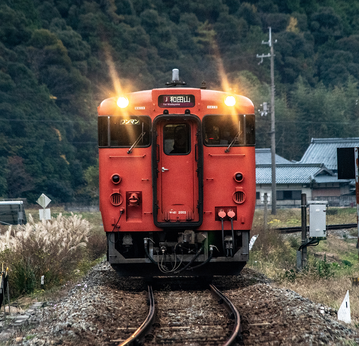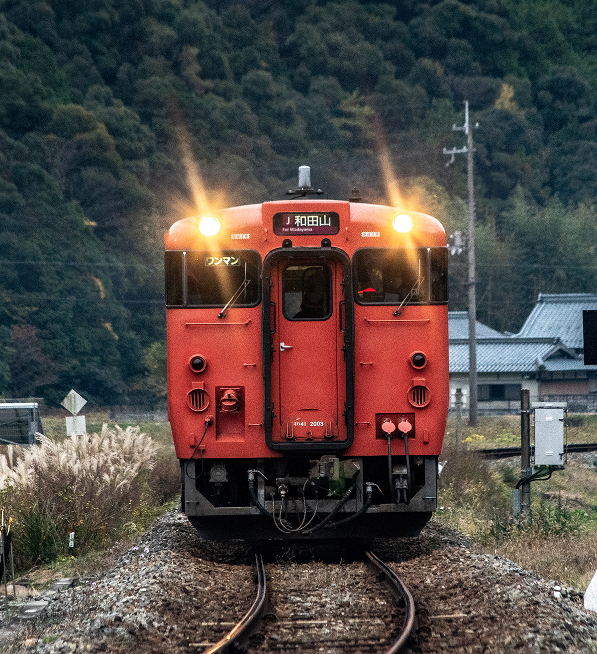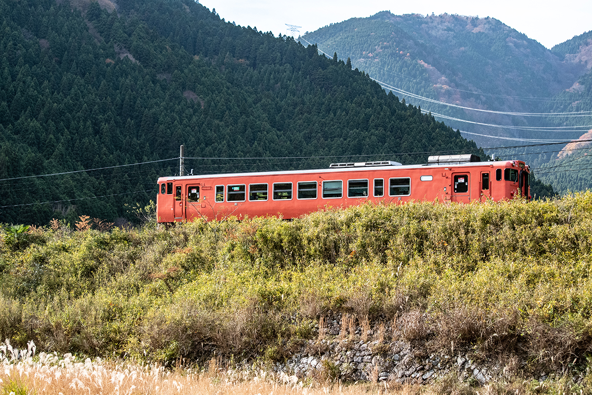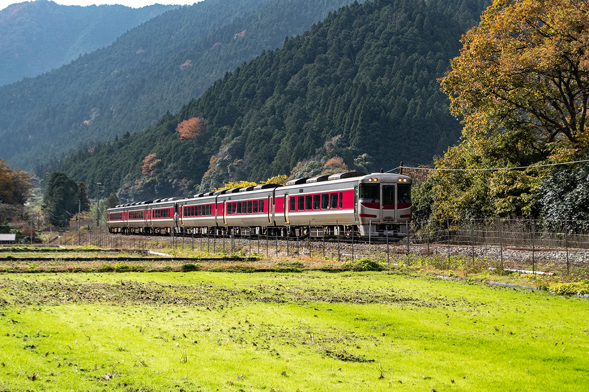 しかし、黒ベースのラッピングキハ40は、紅葉の風景に溶けてしまってまったく映えない。ラッピングは、風景とのマッチングを考えるべきだ。