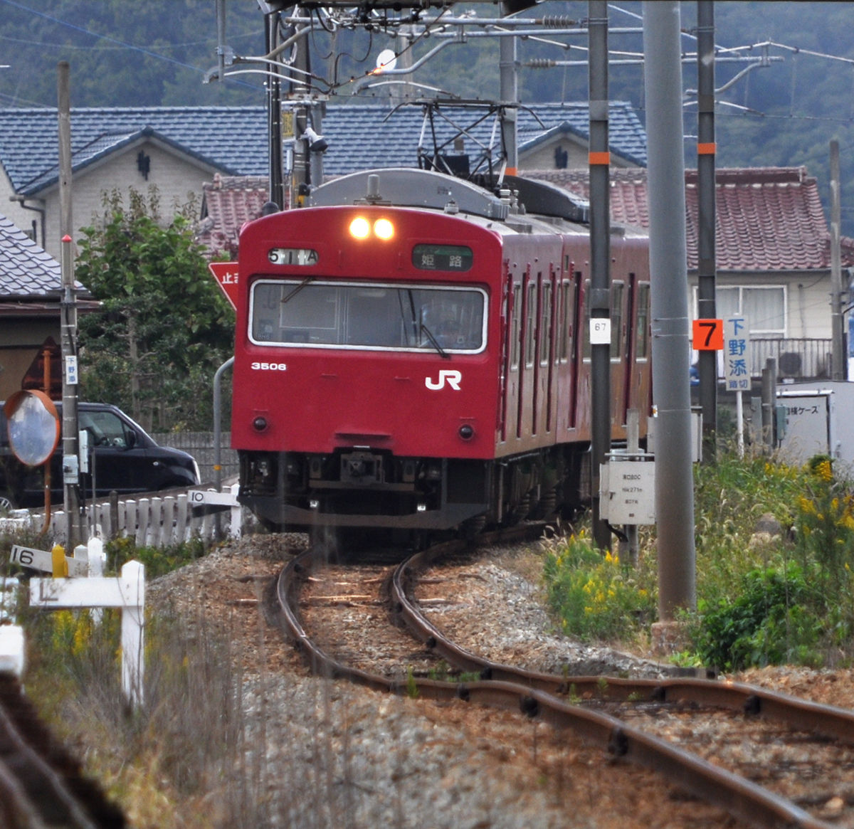 1981年にまだ非電化の一度バイクできたことがあるがその時は、ついでに撮って帰った程度だった。当時は音楽に夢中で鉄道趣味を中断していた。まだ、キハ35やキハ58やDD51が走っていたのに実に惜しいことをした。2018年のこの時は、それでもまだ103系が頑張っている。溝口から福崎方面へ少し歩くと見慣れた風景が現れた。半世紀近く前でも地形は良く憶えている。カーブする辺りから先は昔の趣が残っている。というかあまり変わっていないところがうれしい。