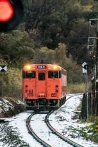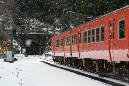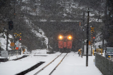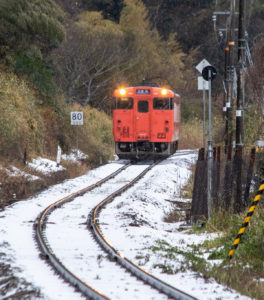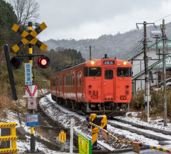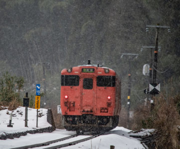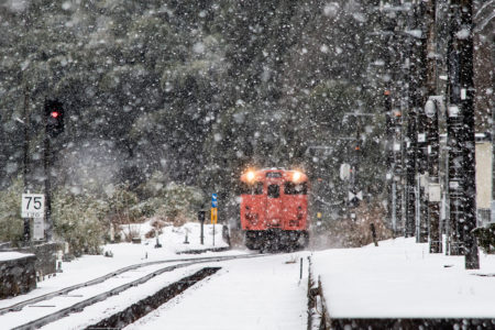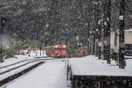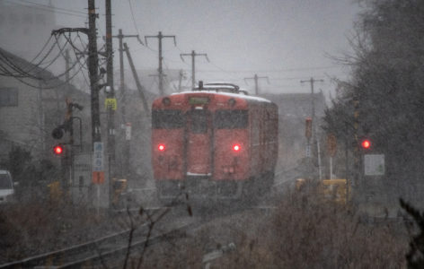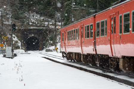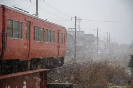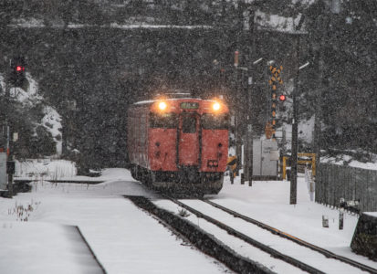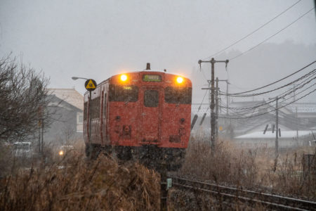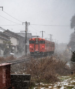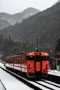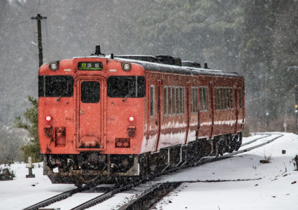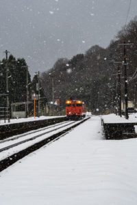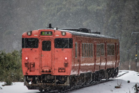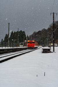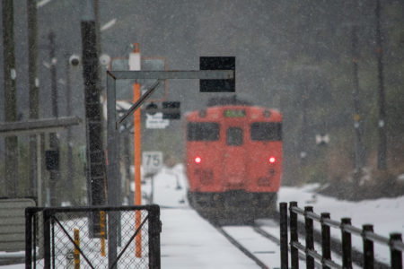 年末年始雪鉄ツアーの2日目に友人の車を借りて浜坂の手前まで行った。友人宅のある日高町は、朝から一面の雪景色。道路も山もこんもりと雪が積もって絶好の雪鉄日よりと思いきやまたもや「海沿いは雪ないかもよ」との話。なんでも香住の実家のある人の話では、昨日なかったと。