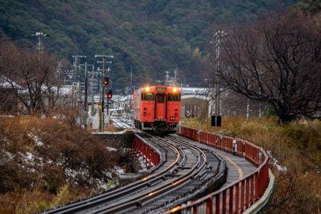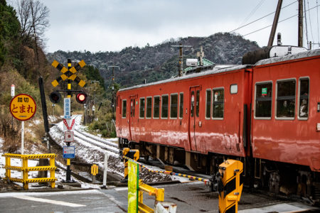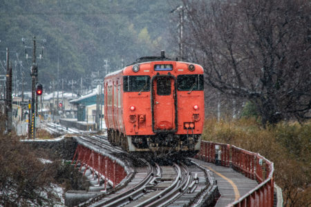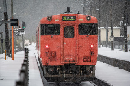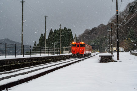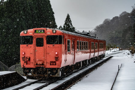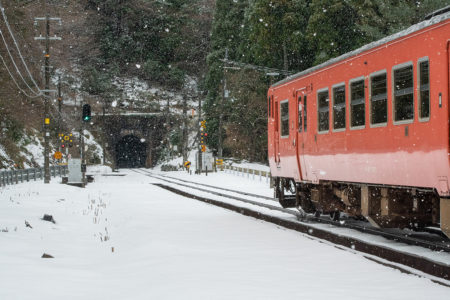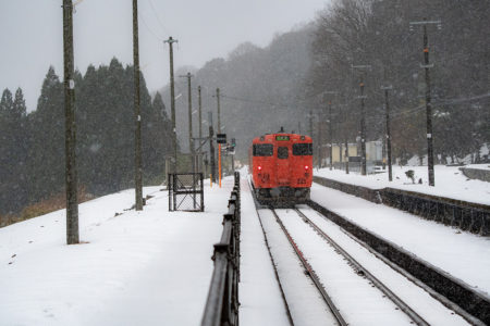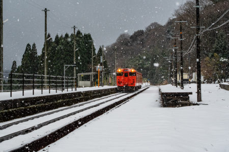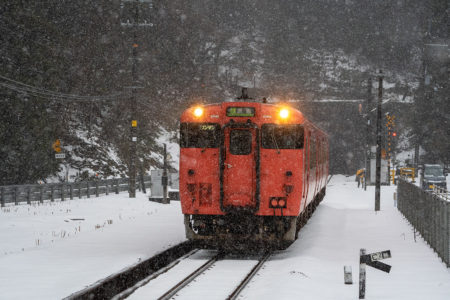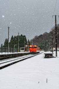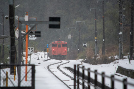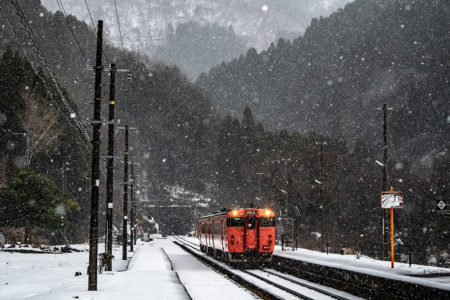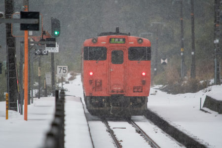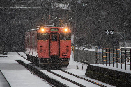 しかし、大晦日に山あいのポツンと一軒駅でこんなことをしているのは、普通の人から見ると変人に見えるのだろうなあと思いながら目的の3本を消化。特急はまかぜも来るはずだったが雪で運休。列車の運転士からは、大晦日に雪の中で写真を撮ってる頭のおかしいオレンジのイカにしか見えなかったかも(笑)