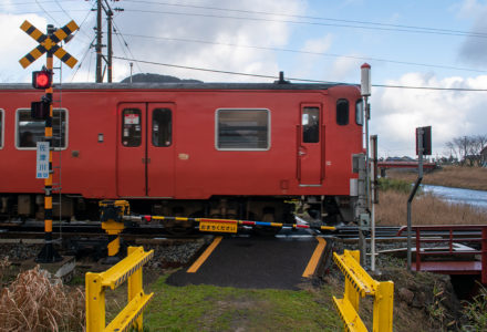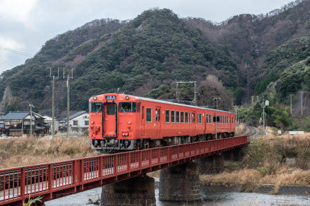 列車の時間になると少しマシになって、撮るだけ撮ったという感じ(笑) その後、ロケハンを兼ねて海沿いの道を柴山から香住へ行き、もうひとつの目的地である鉄橋を確認。帰りに撮る計画で、そのまま第1目的の久谷へ。