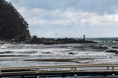 佐津は残雪すら殆どなく、あるのは以前と同じく海からの強風。ここはそういう土地なんだなと悟る。取る場所を探しているウチに1本見逃しの三振(T-T)やっと場所を確定したら、今度は鬼のような吹雪に。もう撮影どころではない。クルマの外にも出られない。ホントに厳しい気候だなあと、山陰海岸の風雪を知るのだった。