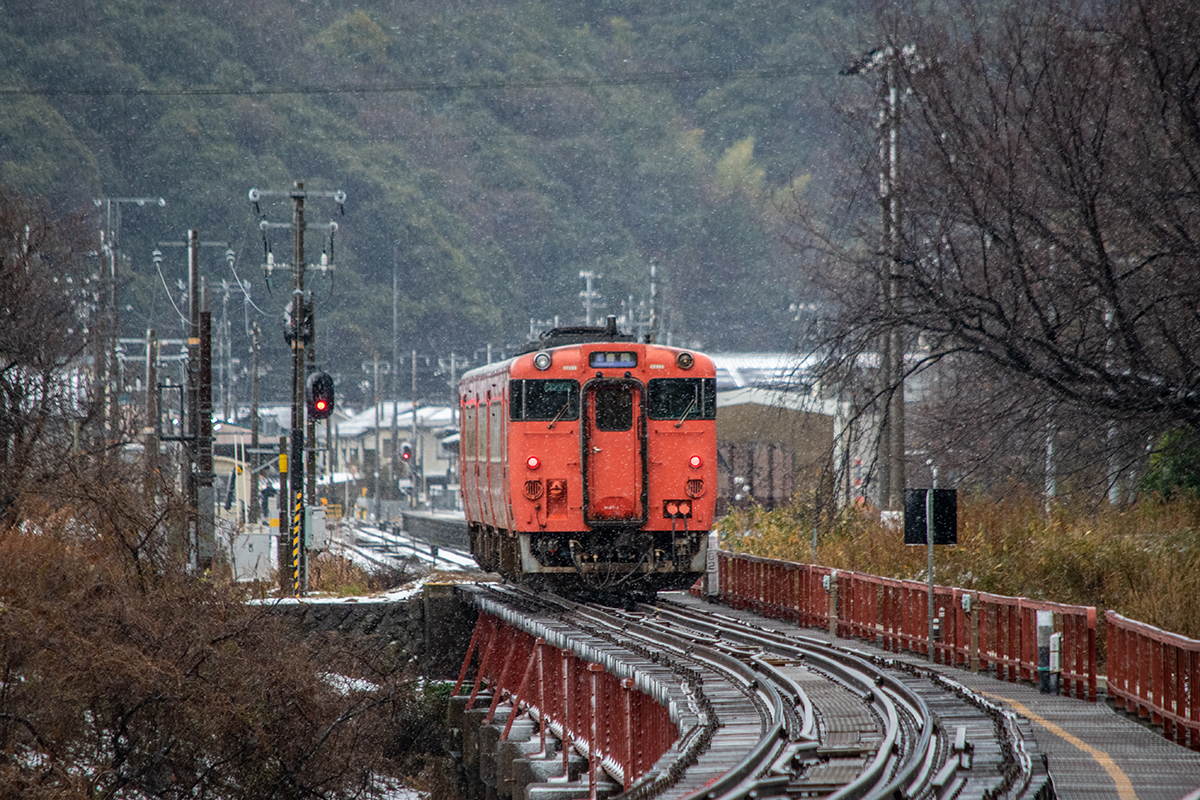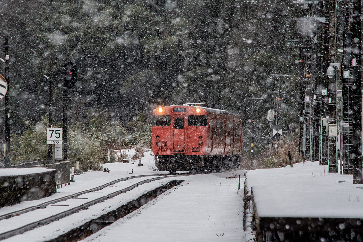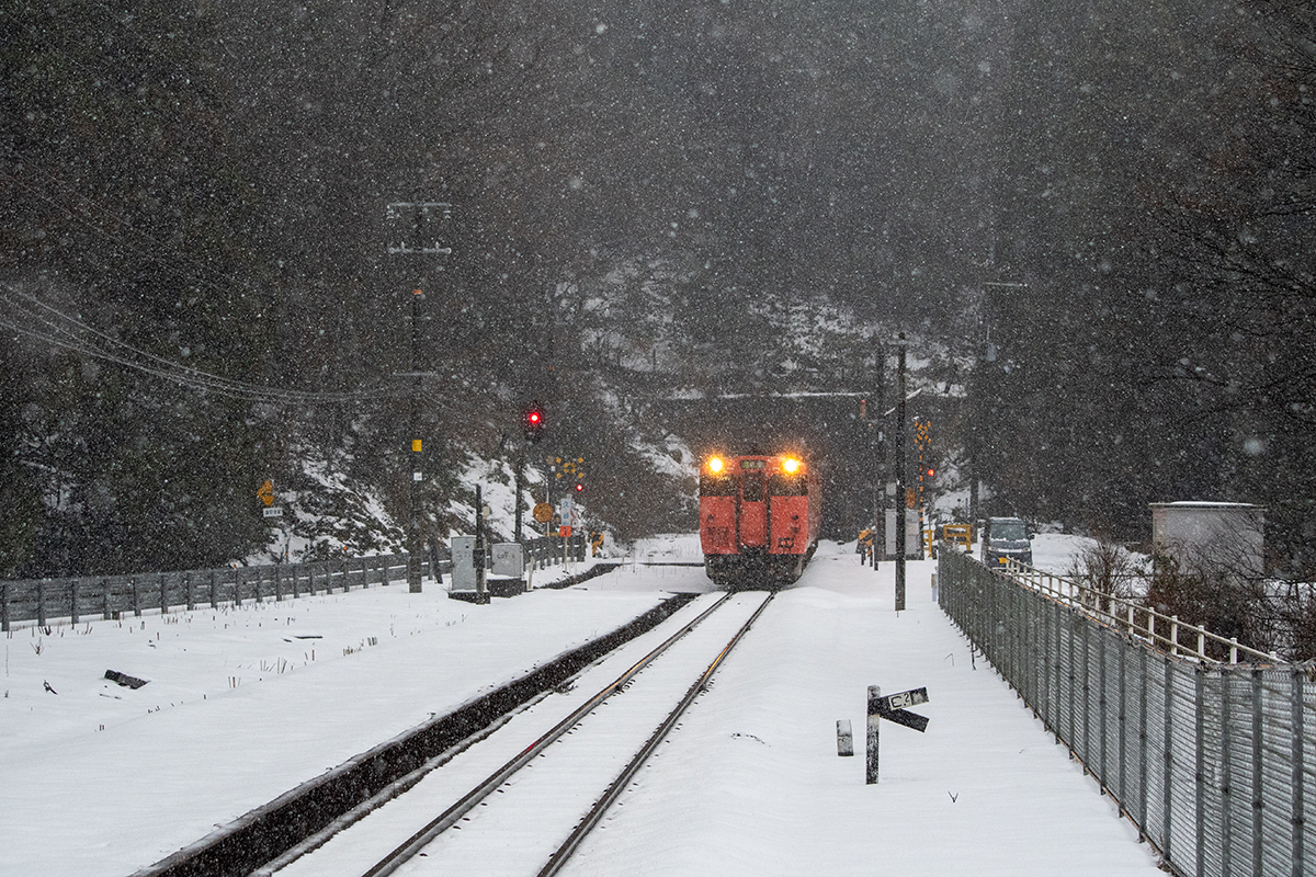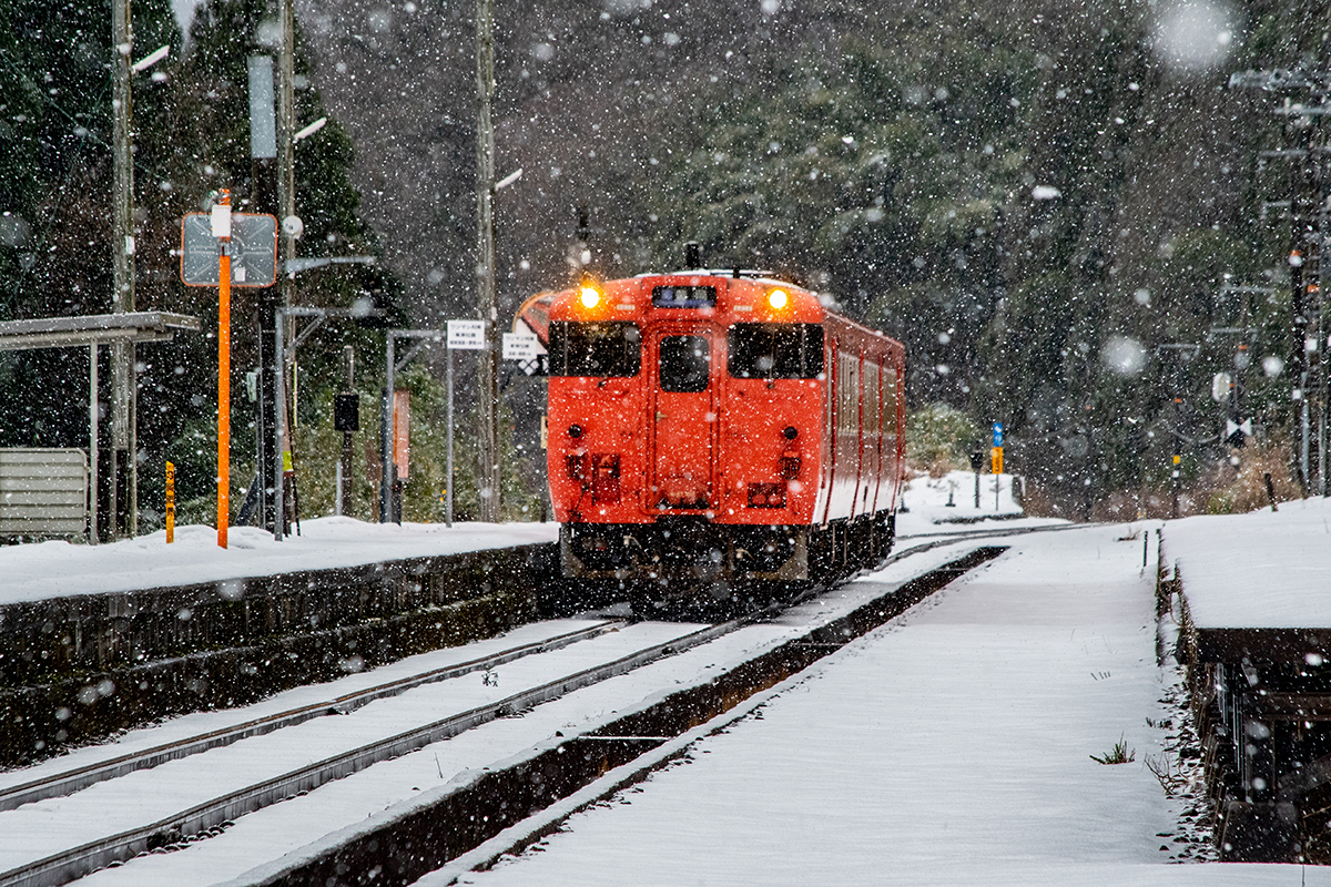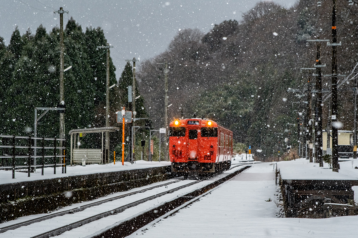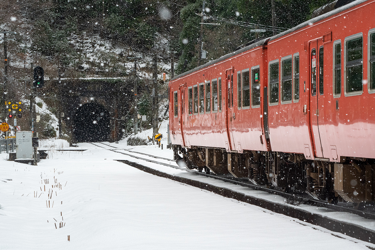 しかし、大晦日に山あいのポツンと一軒駅でこんなことをしているのは、普通の人から見ると変人に見えるのだろうなあと思いながら目的の3本を消化。特急はまかぜも来るはずだったが雪で運休。列車の運転士からは、大晦日に雪の中で写真を撮ってる頭のおかしいオレンジのイカにしか見えなかったかも(笑)