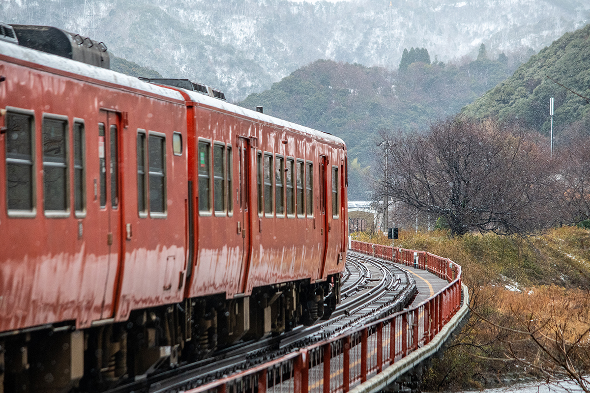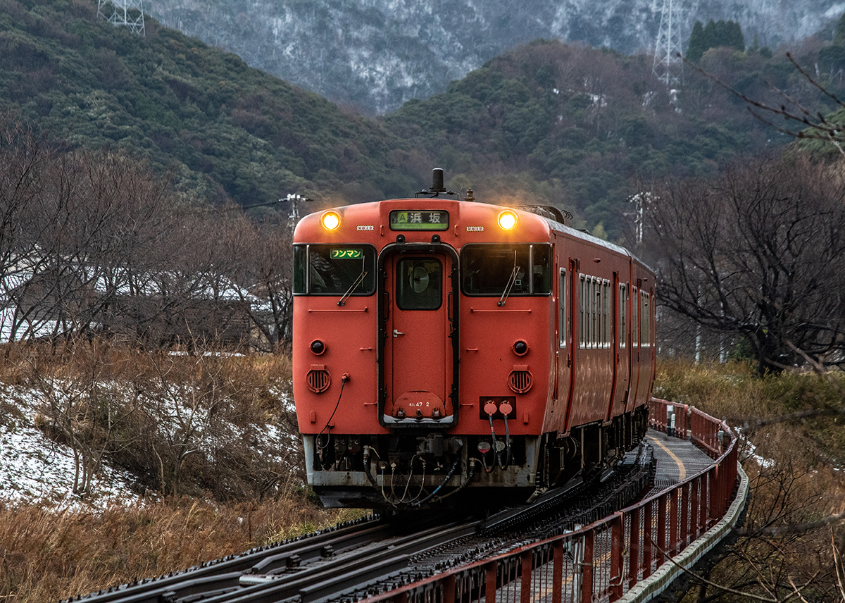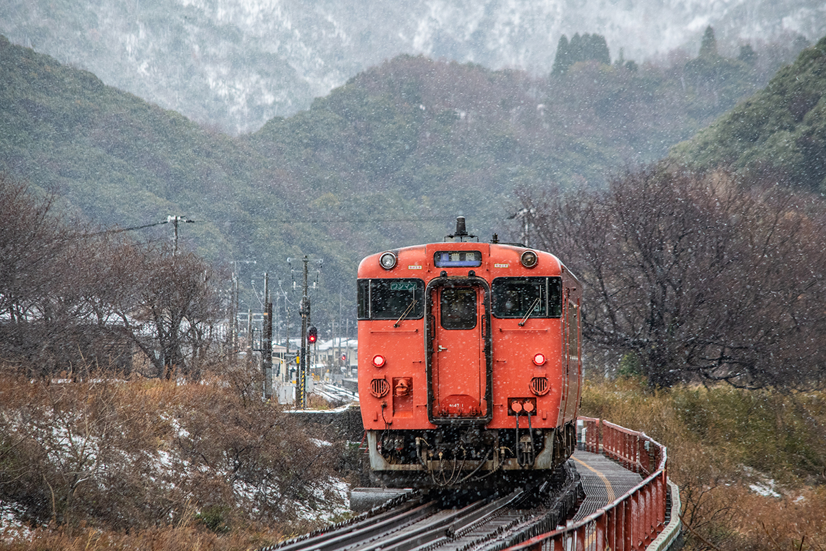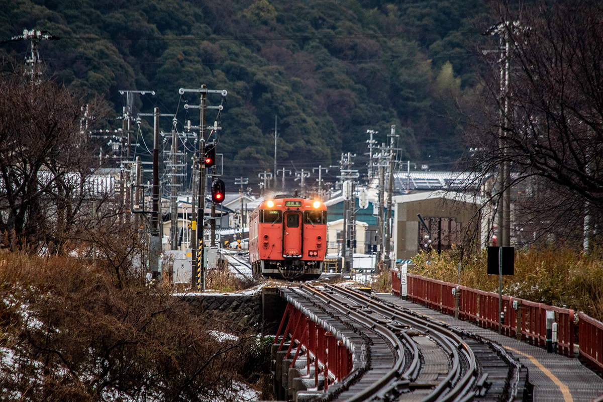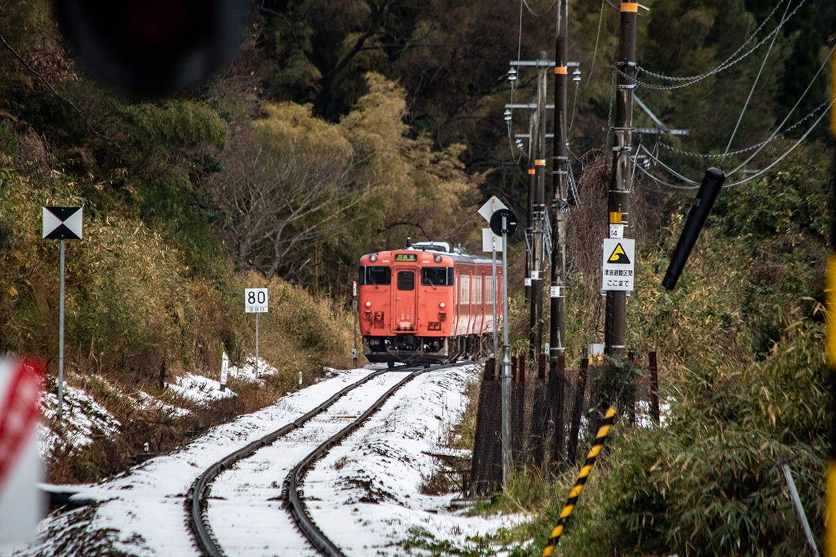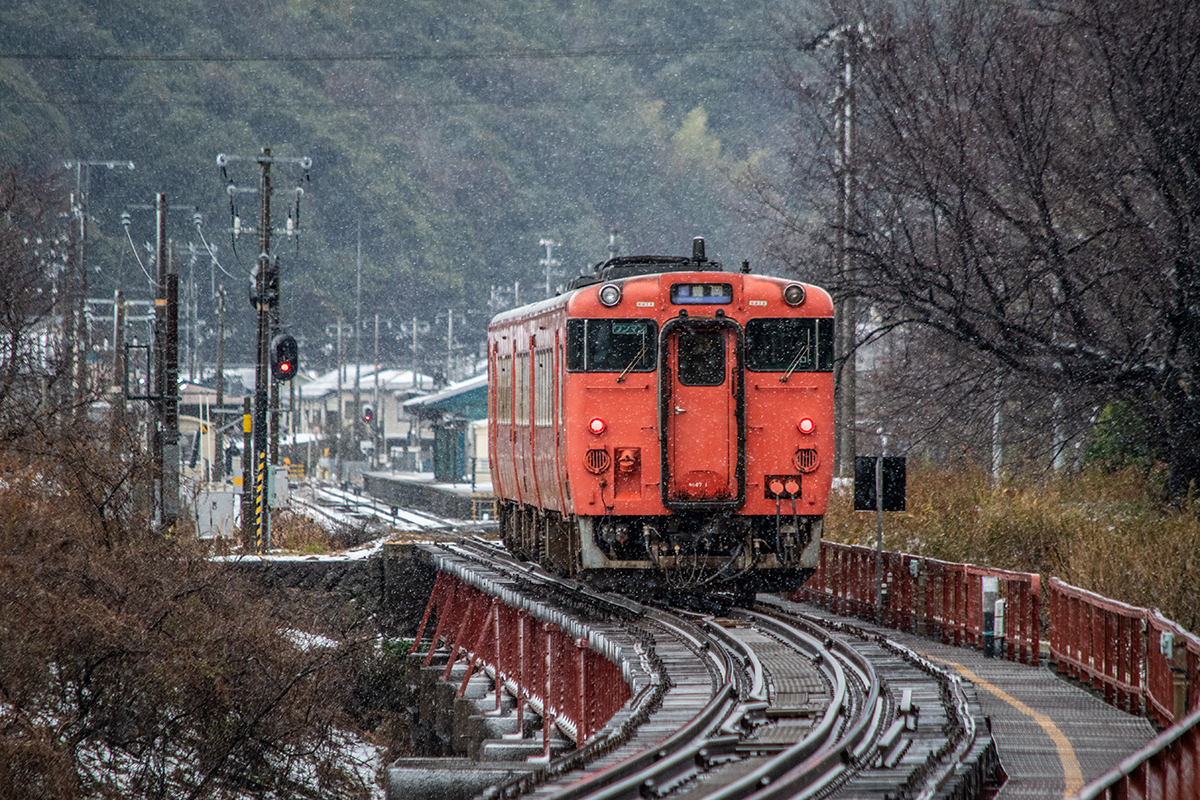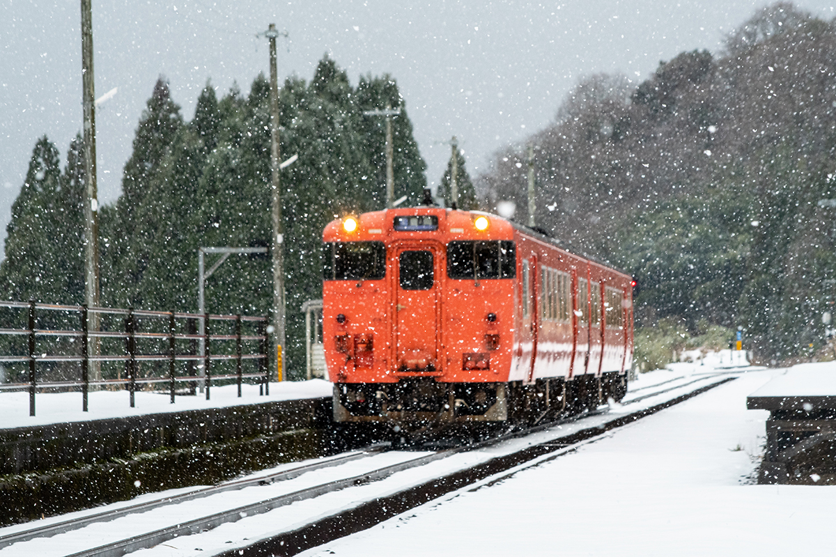 しかし、大晦日に山あいのポツンと一軒駅でこんなことをしているのは、普通の人から見ると変人に見えるのだろうなあと思いながら目的の3本を消化。特急はまかぜも来るはずだったが雪で運休。列車の運転士からは、大晦日に雪の中で写真を撮ってる頭のおかしいオレンジのイカにしか見えなかったかも(笑)
