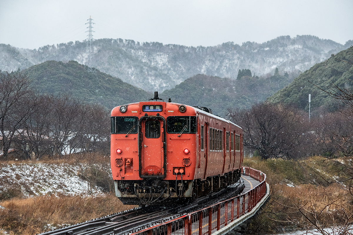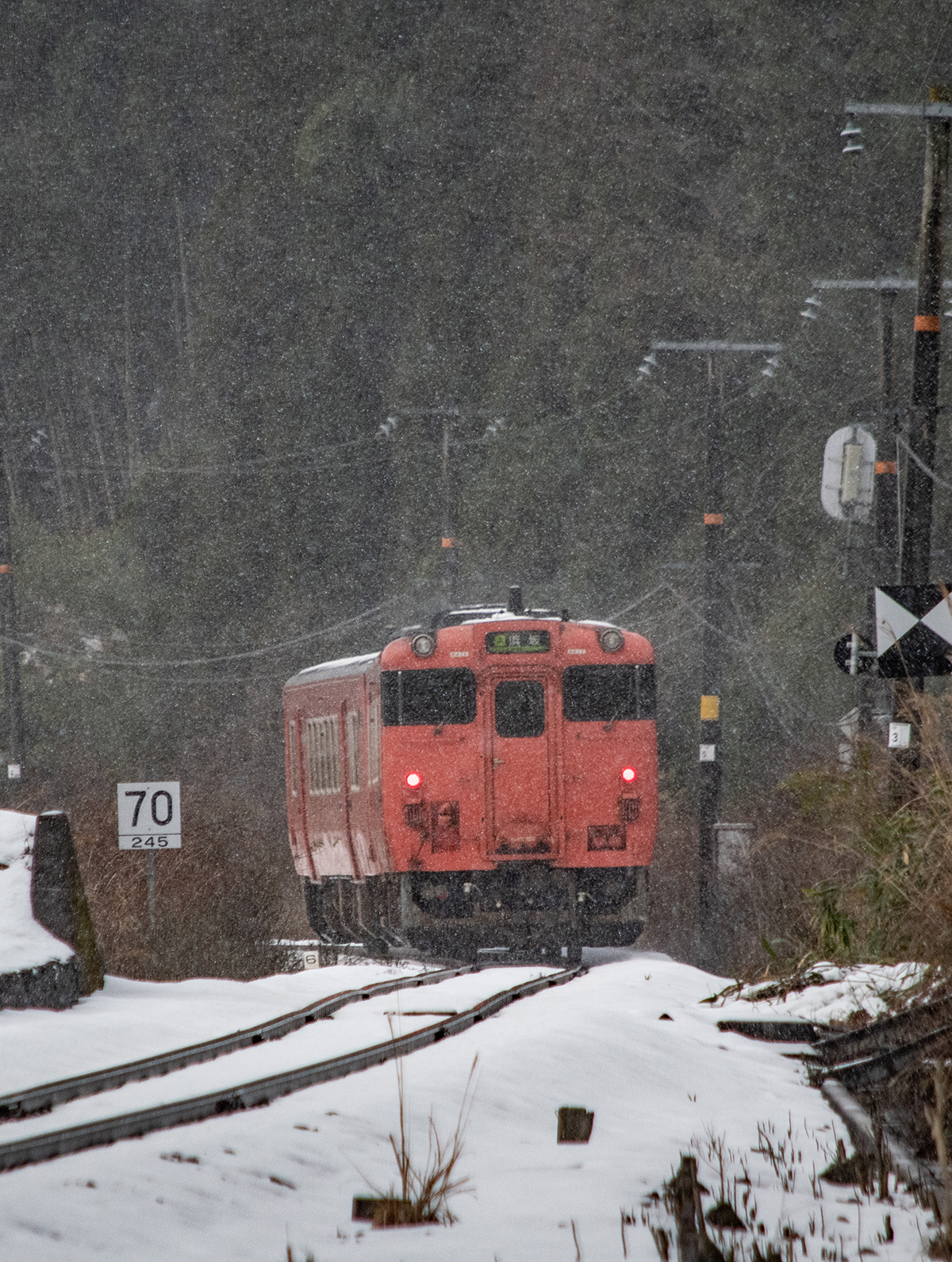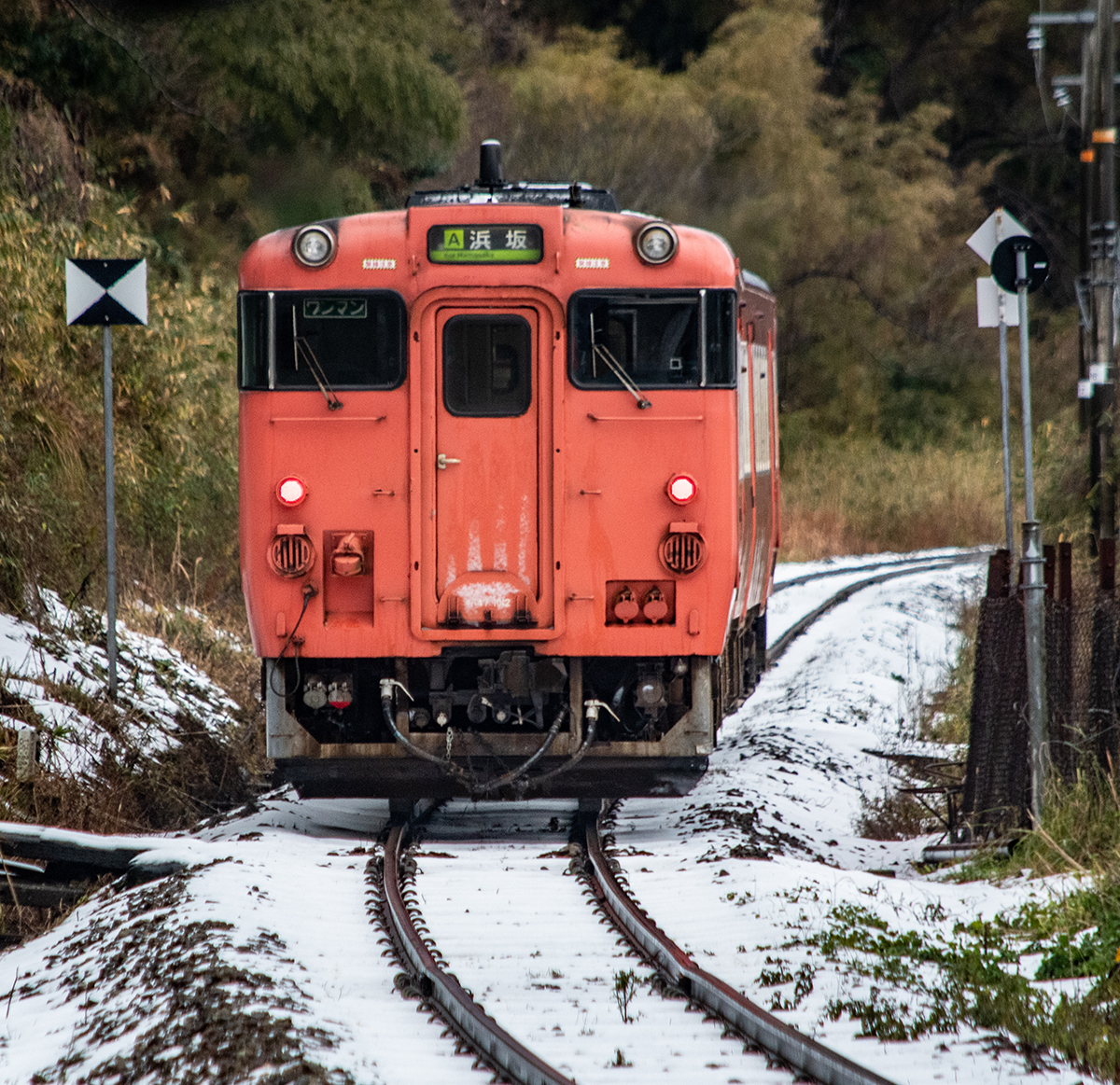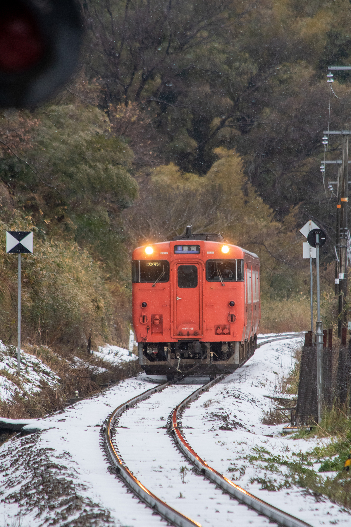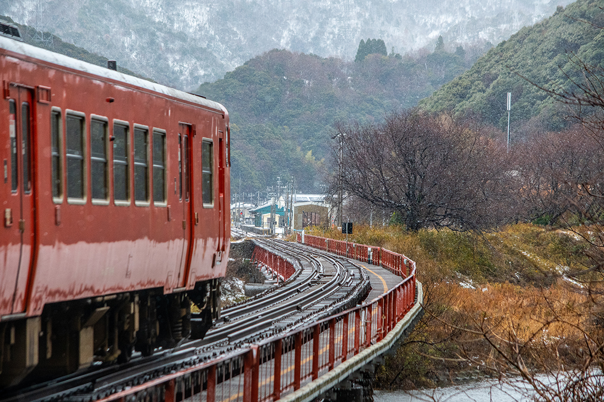 しかし、大晦日に山あいのポツンと一軒駅でこんなことをしているのは、普通の人から見ると変人に見えるのだろうなあと思いながら目的の3本を消化。特急はまかぜも来るはずだったが雪で運休。列車の運転士からは、大晦日に雪の中で写真を撮ってる頭のおかしいオレンジのイカにしか見えなかったかも(笑)