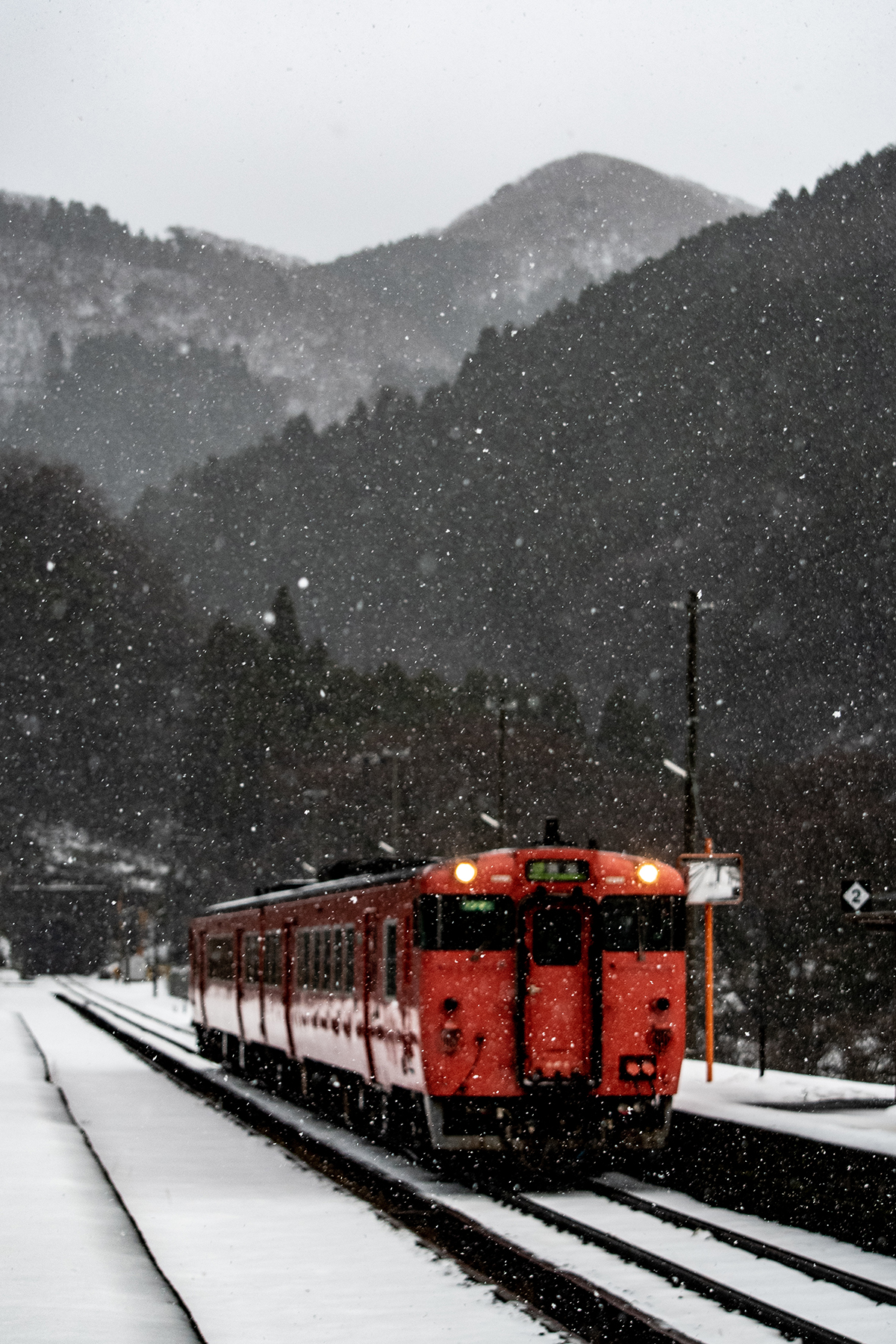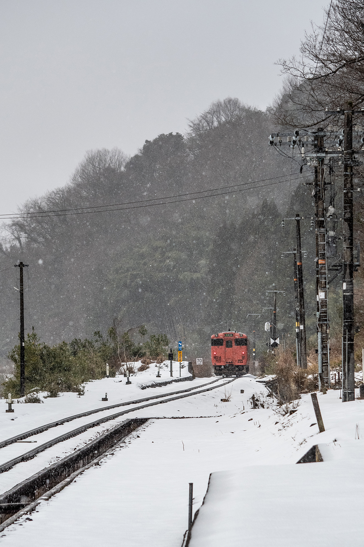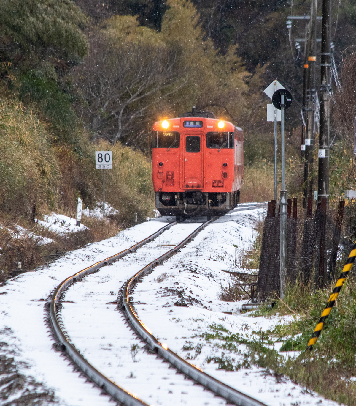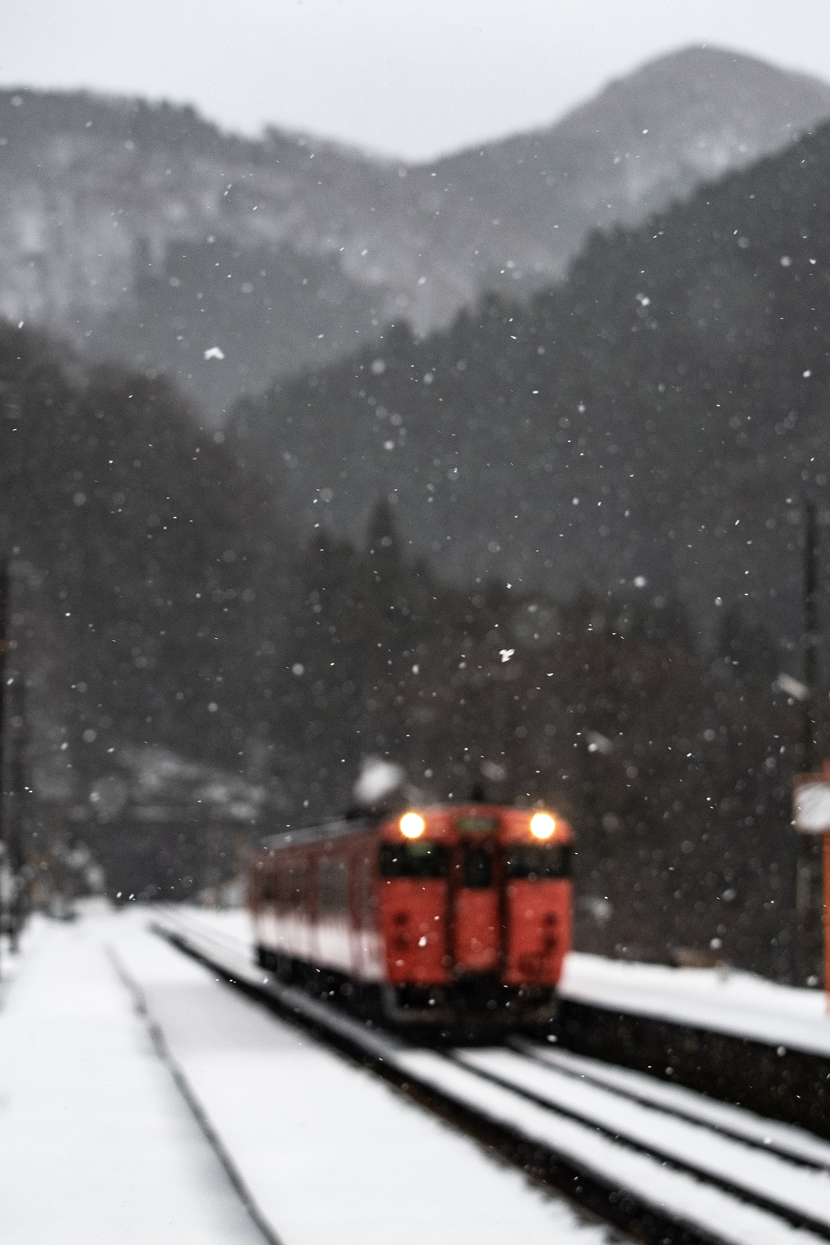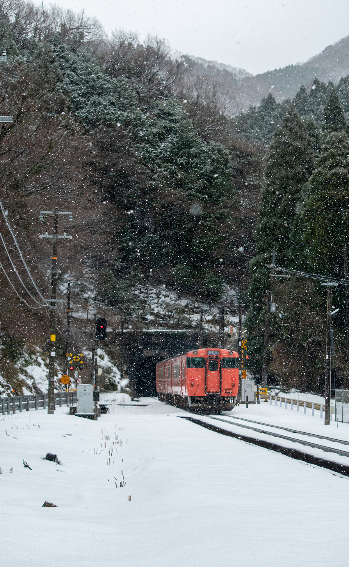 しかし、大晦日に山あいのポツンと一軒駅でこんなことをしているのは、普通の人から見ると変人に見えるのだろうなあと思いながら目的の3本を消化。特急はまかぜも来るはずだったが雪で運休。列車の運転士からは、大晦日に雪の中で写真を撮ってる頭のおかしいオレンジのイカにしか見えなかったかも(笑)