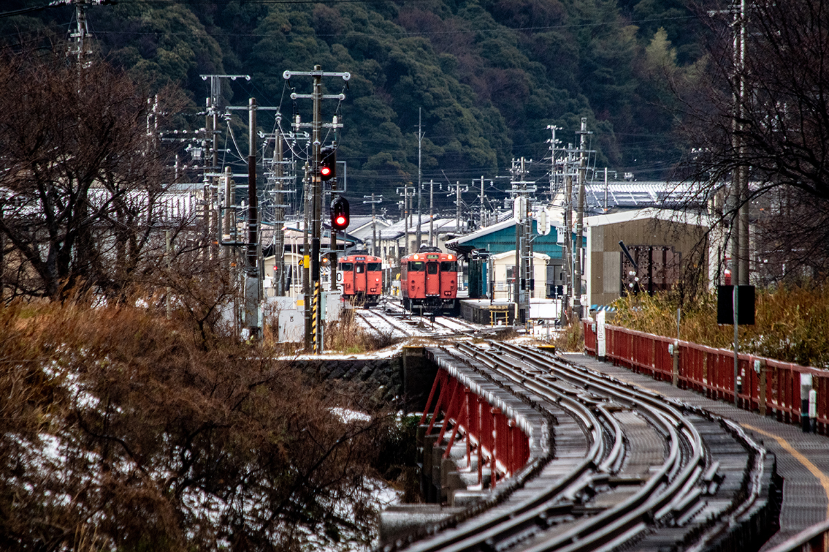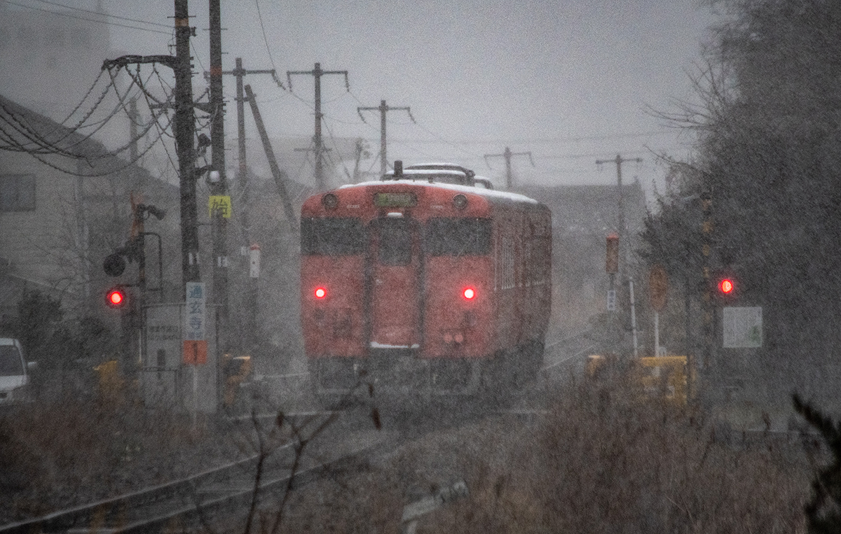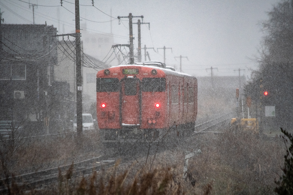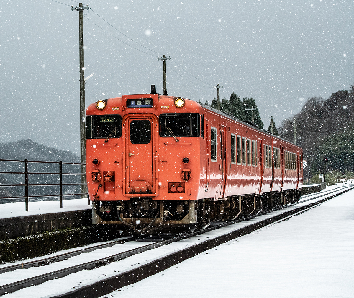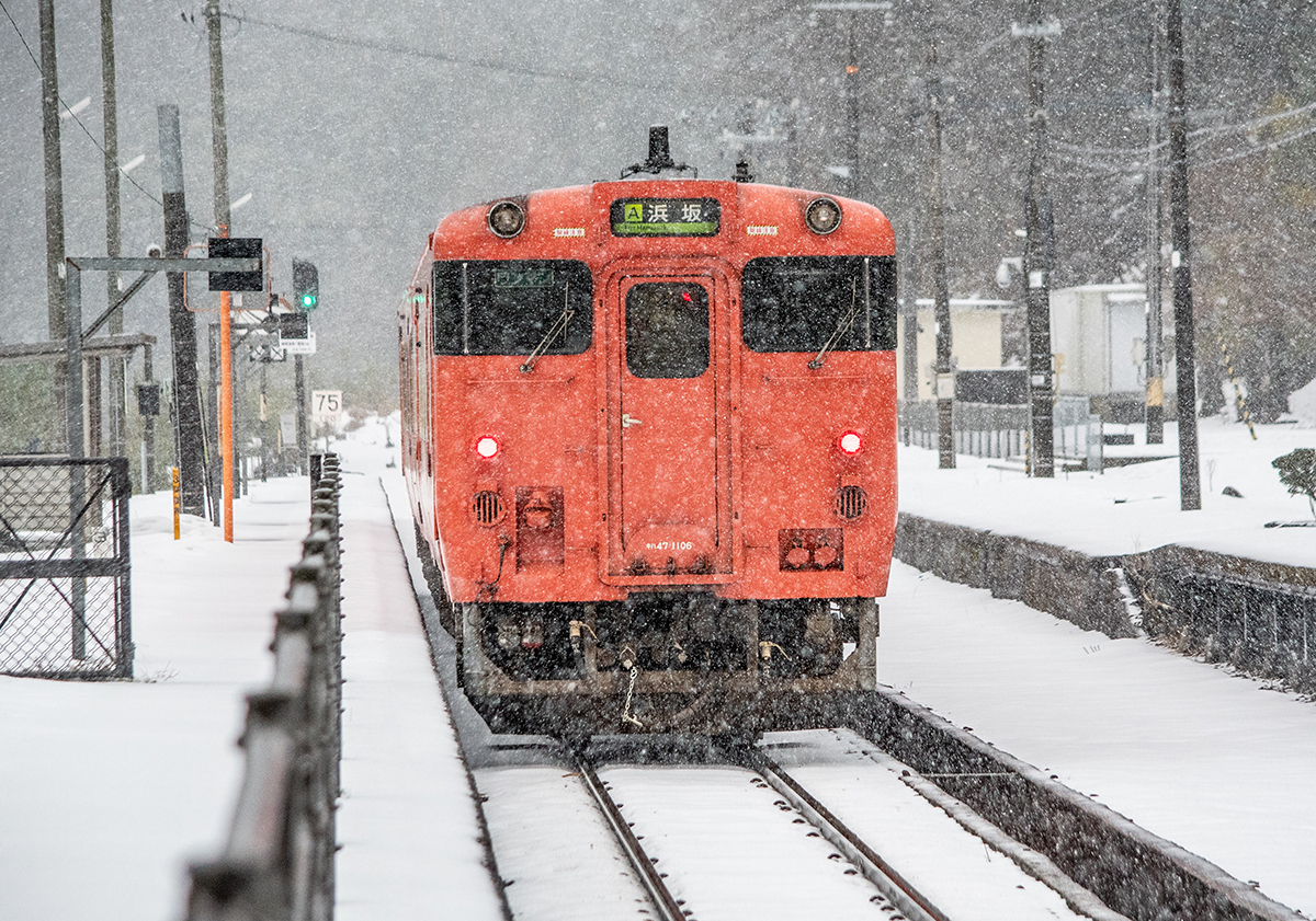 年末年始雪鉄ツアーの2日目に友人の車を借りて浜坂の手前まで行った。友人宅のある日高町は、朝から一面の雪景色。道路も山もこんもりと雪が積もって絶好の雪鉄日よりと思いきやまたもや「海沿いは雪ないかもよ」との話。なんでも香住の実家のある人の話では、昨日なかったと。