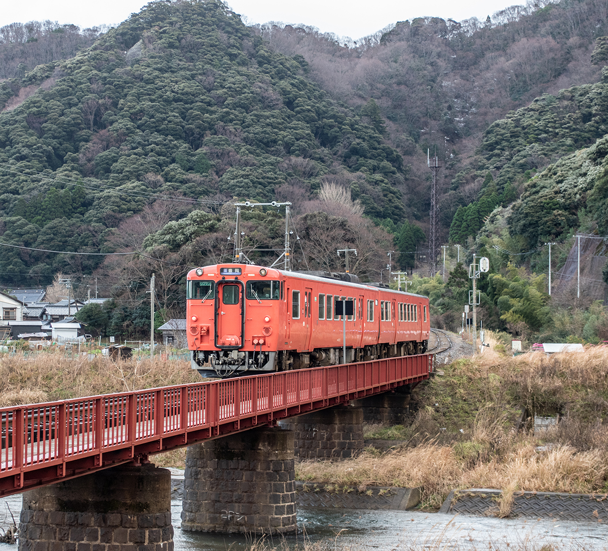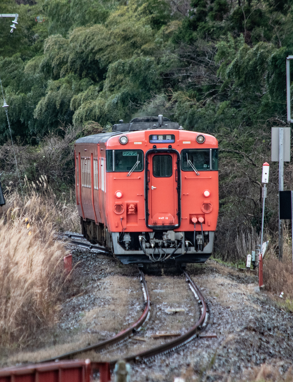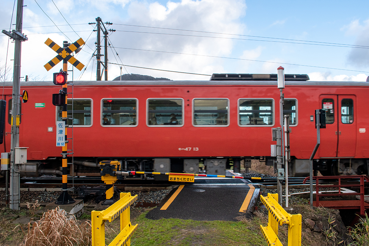 列車の時間になると少しマシになって、撮るだけ撮ったという感じ(笑) その後、ロケハンを兼ねて海沿いの道を柴山から香住へ行き、もうひとつの目的地である鉄橋を確認。帰りに撮る計画で、そのまま第1目的の久谷へ。