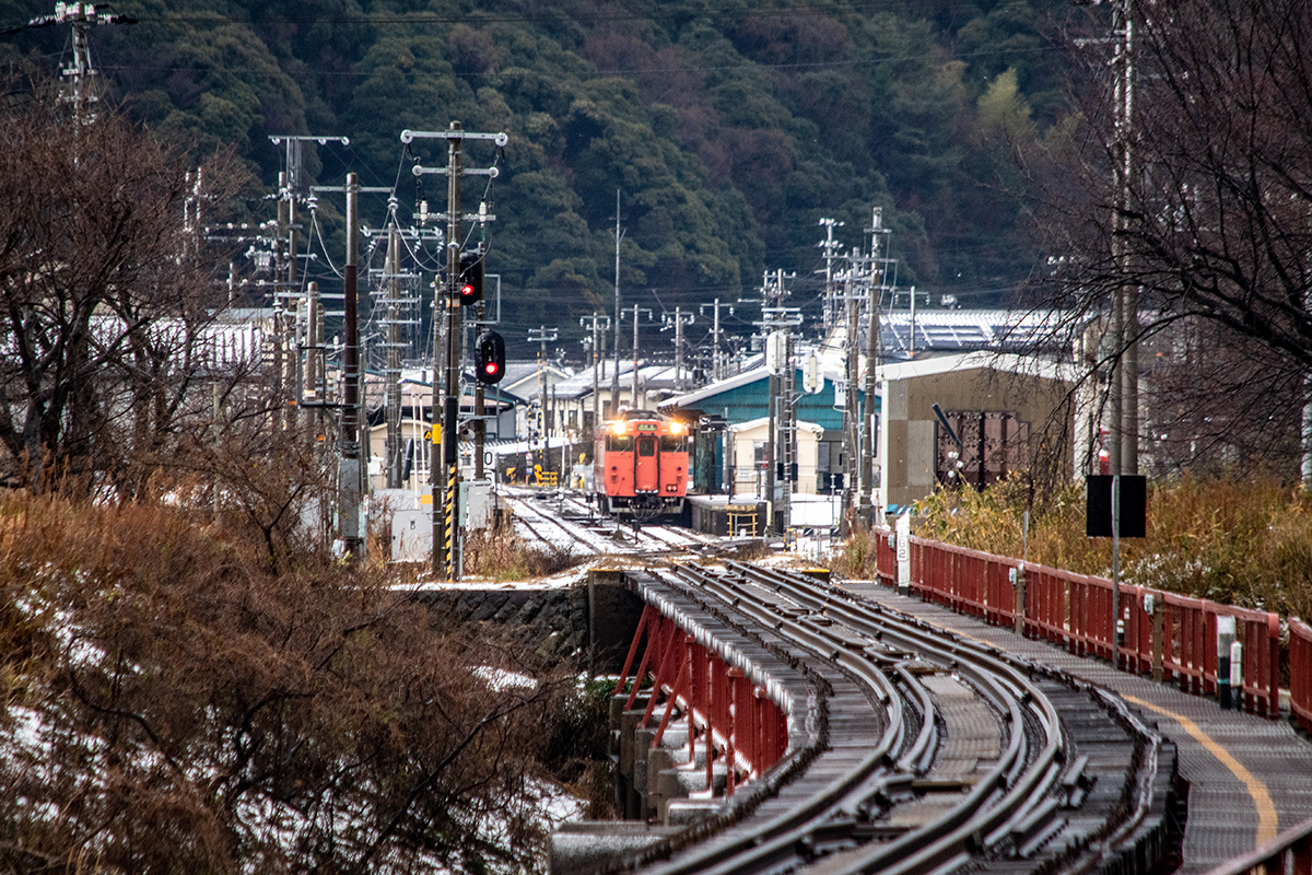 その後香住に戻る途中で時間があったので餘部鉄橋に寄ってみたが、ここも残雪状態で鬼のような強風。お土産だけ買って香住へ。香住も強風で、下見しておいた鉄橋でなんとか2本撮って暗くならないうちに友人宅へ帰った。