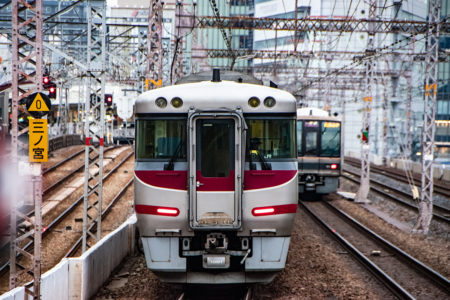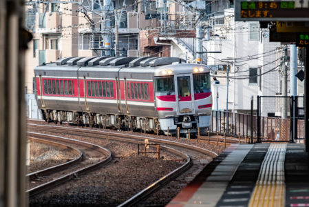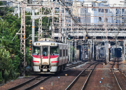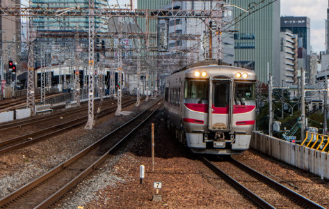 気動車は、通過すると排気ガスの臭いがして、都市にいても非電化線区の風が吹く。大好きな播但線で出会う「はまかぜ」が身近な場所で見れるのもイマドキ風に言えば「つながってる感」があってうれしい(笑)