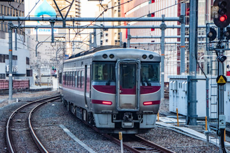 気動車の特急と言えば、国鉄時代のキハ80、キハ82、キハ181系にひきつがれた、あの代表的なカタチがカッコ良いと思うし、実際ファンも多いようだ。大きなパノラミックウインドウや窓上のニコイチのライト、クリーム色に赤という女性系?(笑)な色と相まってエレガントで気品さえ感じる(個人的見解)。