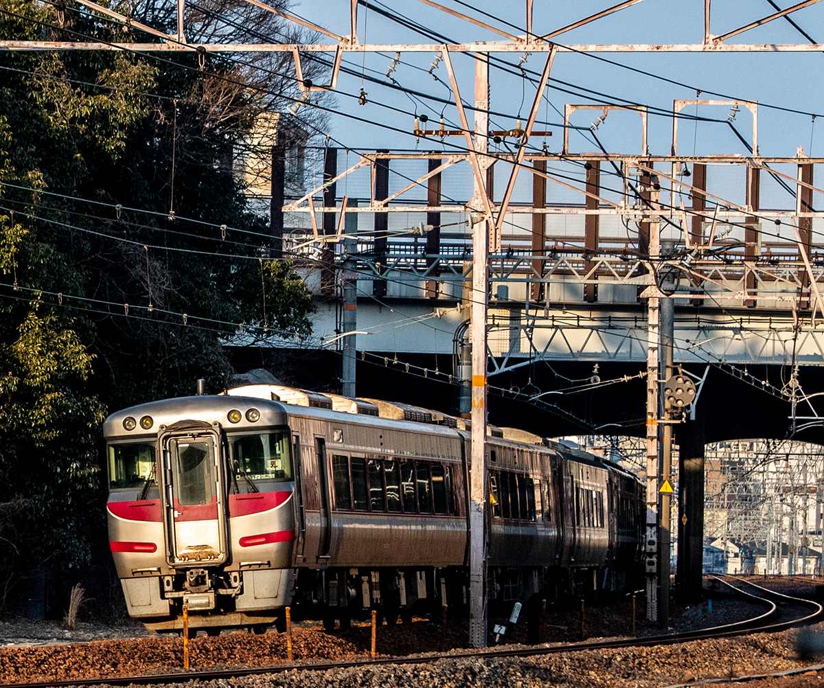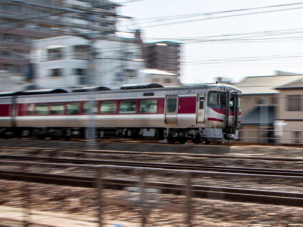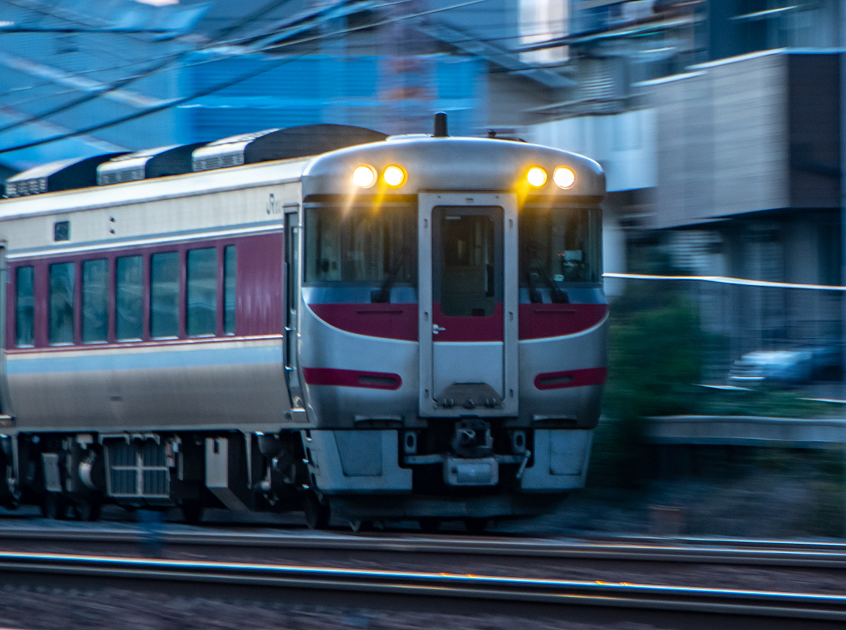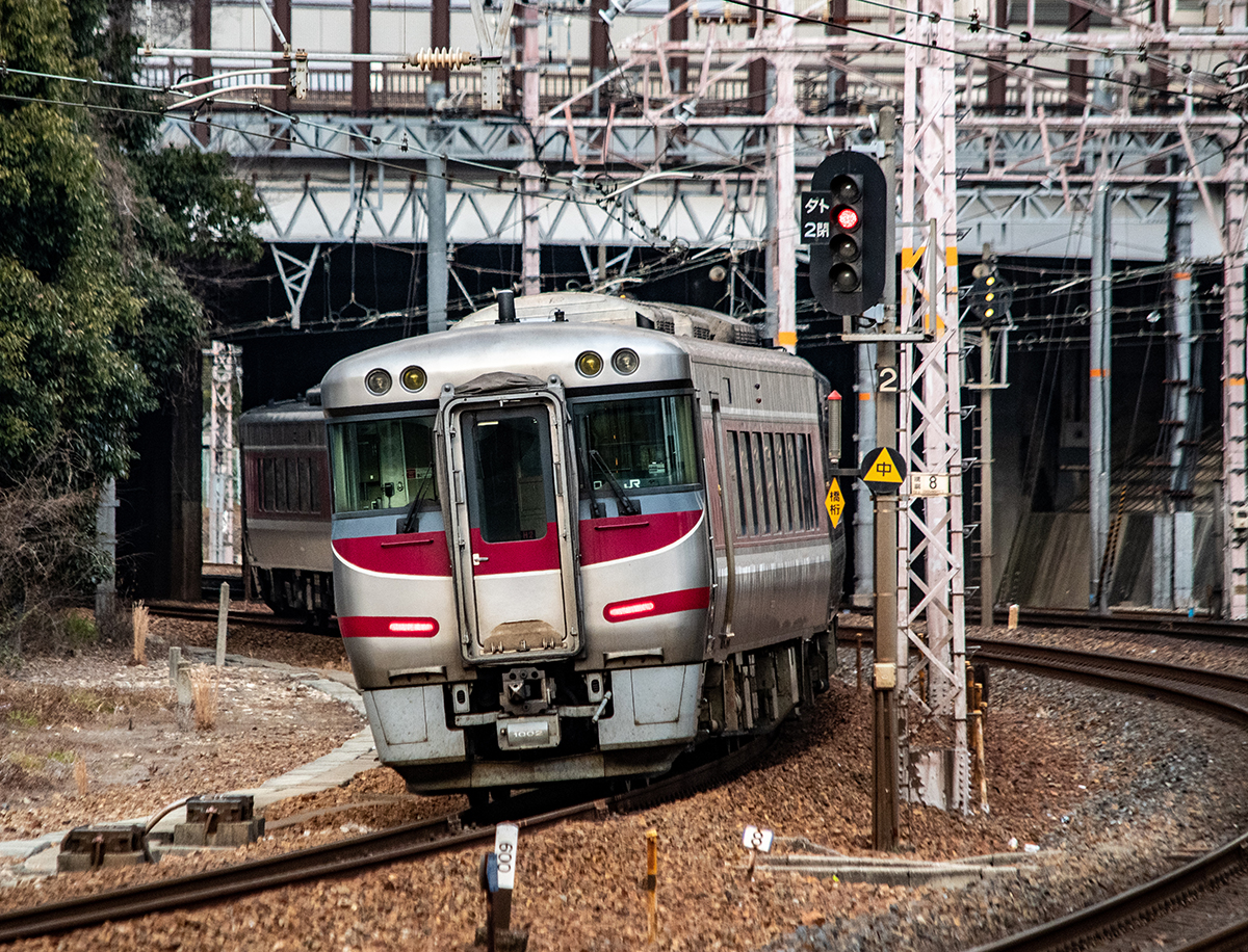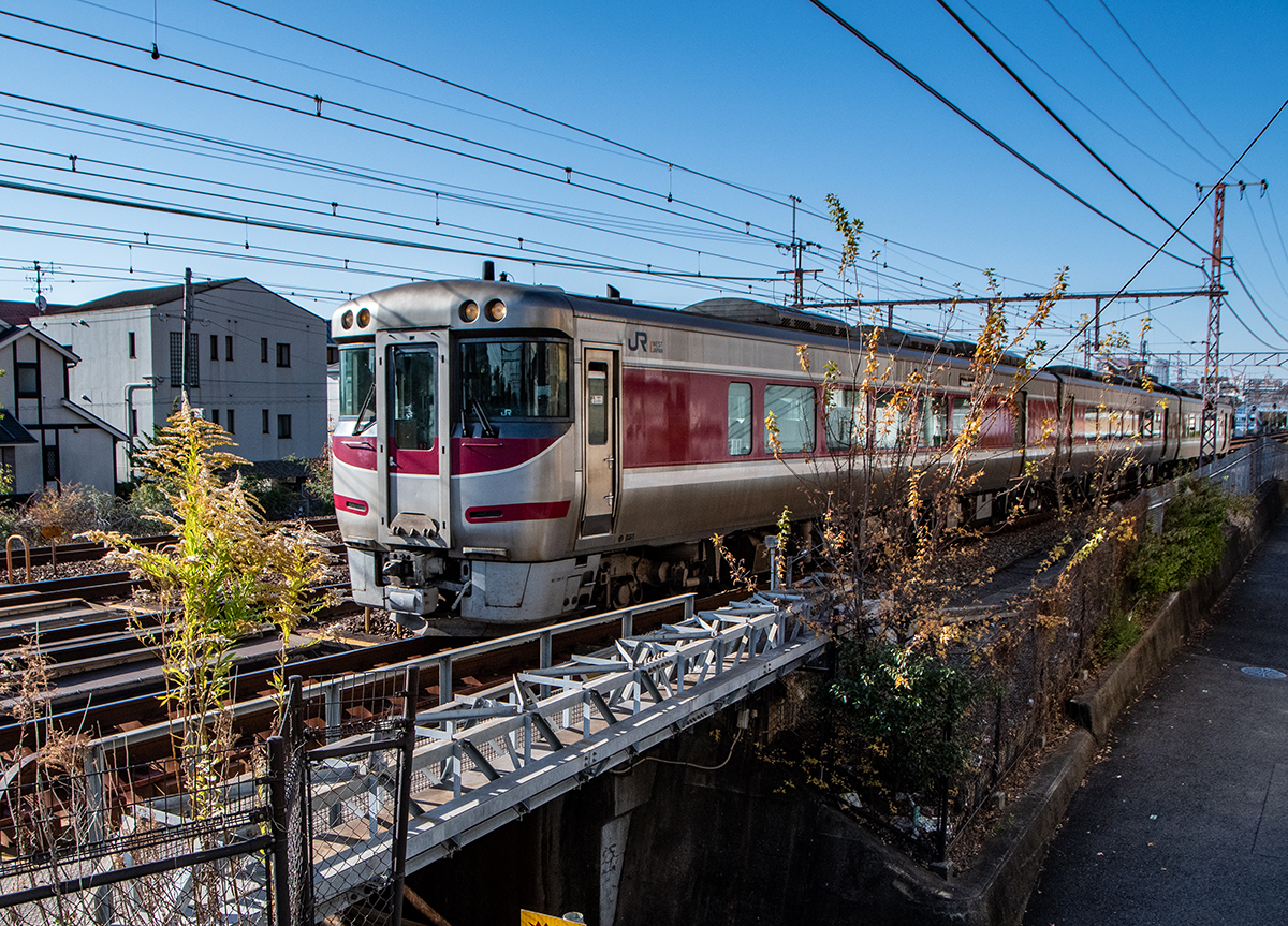 気動車は、通過すると排気ガスの臭いがして、都市にいても非電化線区の風が吹く。大好きな播但線で出会う「はまかぜ」が身近な場所で見れるのもイマドキ風に言えば「つながってる感」があってうれしい(笑)