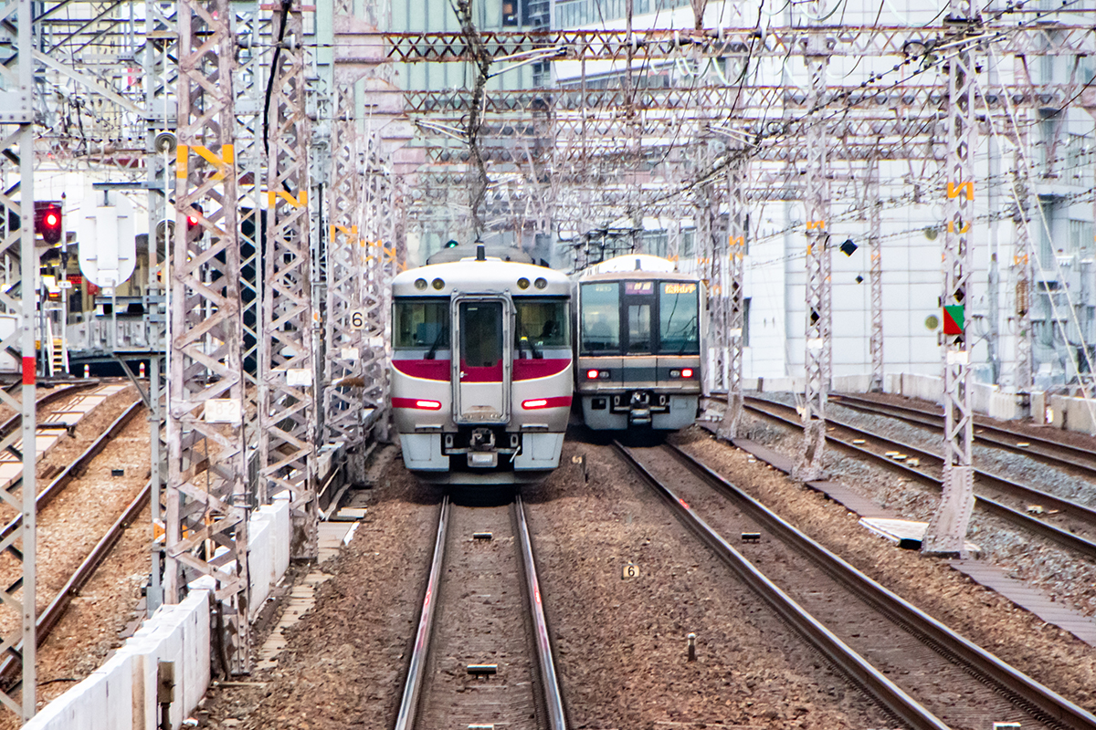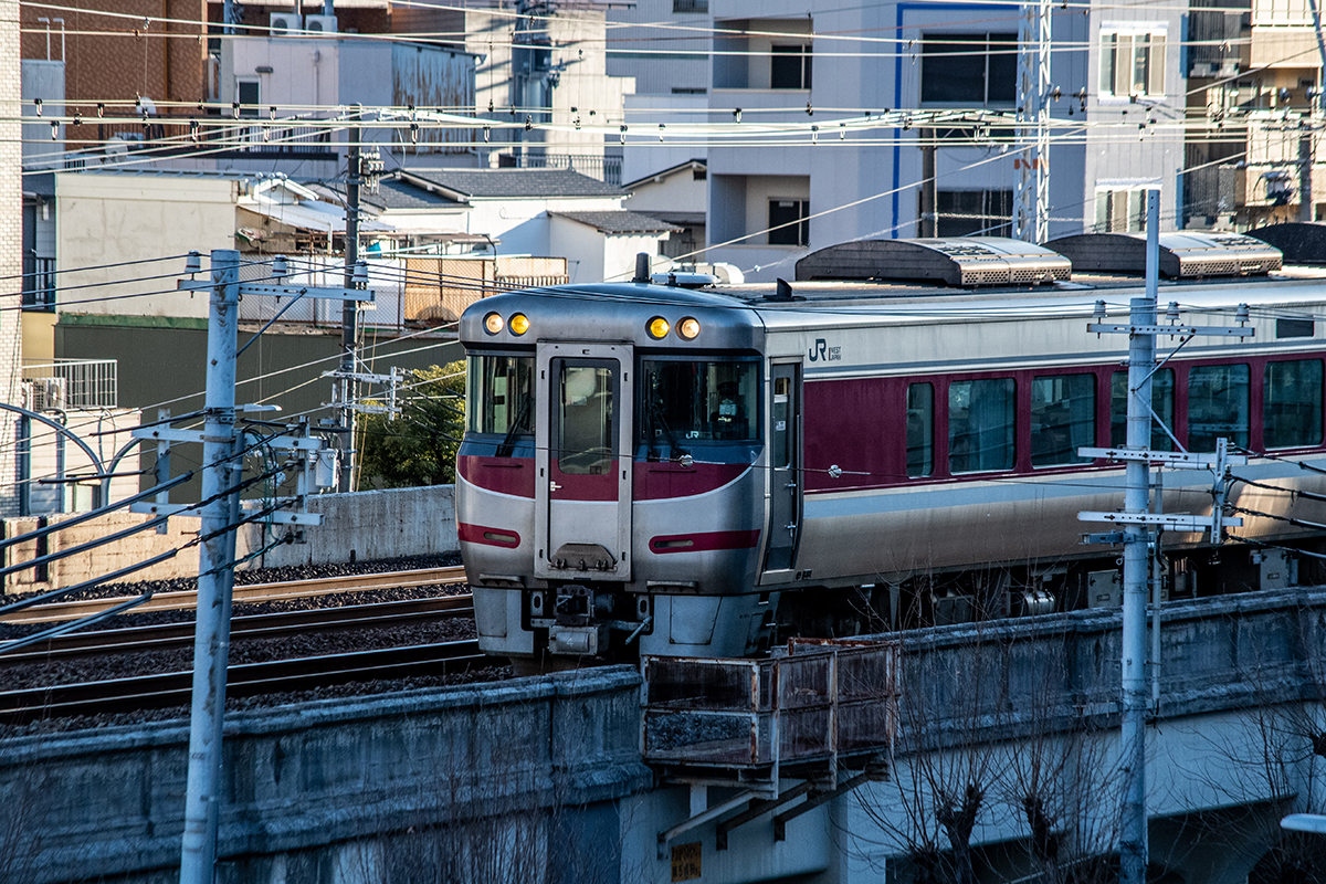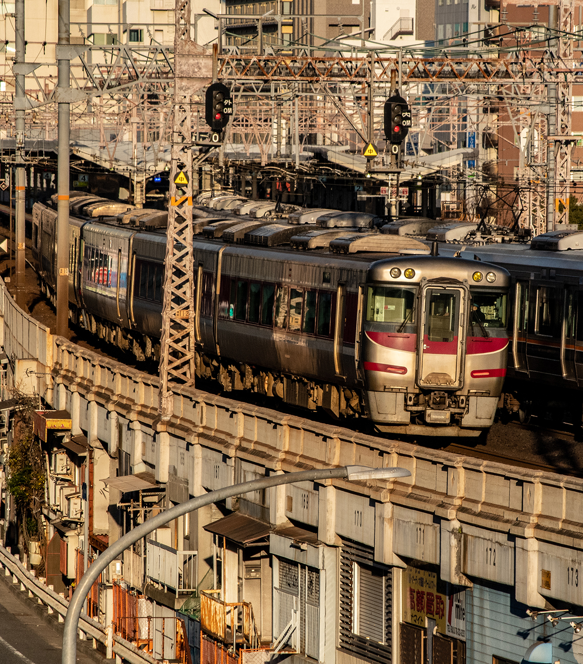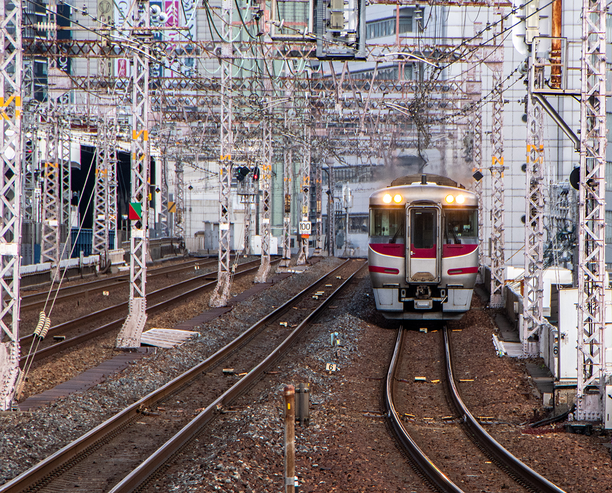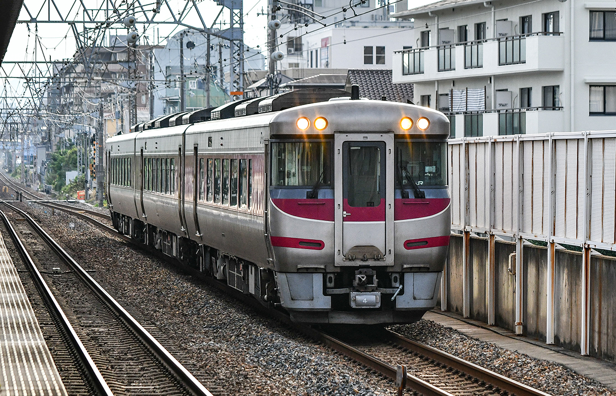 気動車は、通過すると排気ガスの臭いがして、都市にいても非電化線区の風が吹く。大好きな播但線で出会う「はまかぜ」が身近な場所で見れるのもイマドキ風に言えば「つながってる感」があってうれしい(笑)
