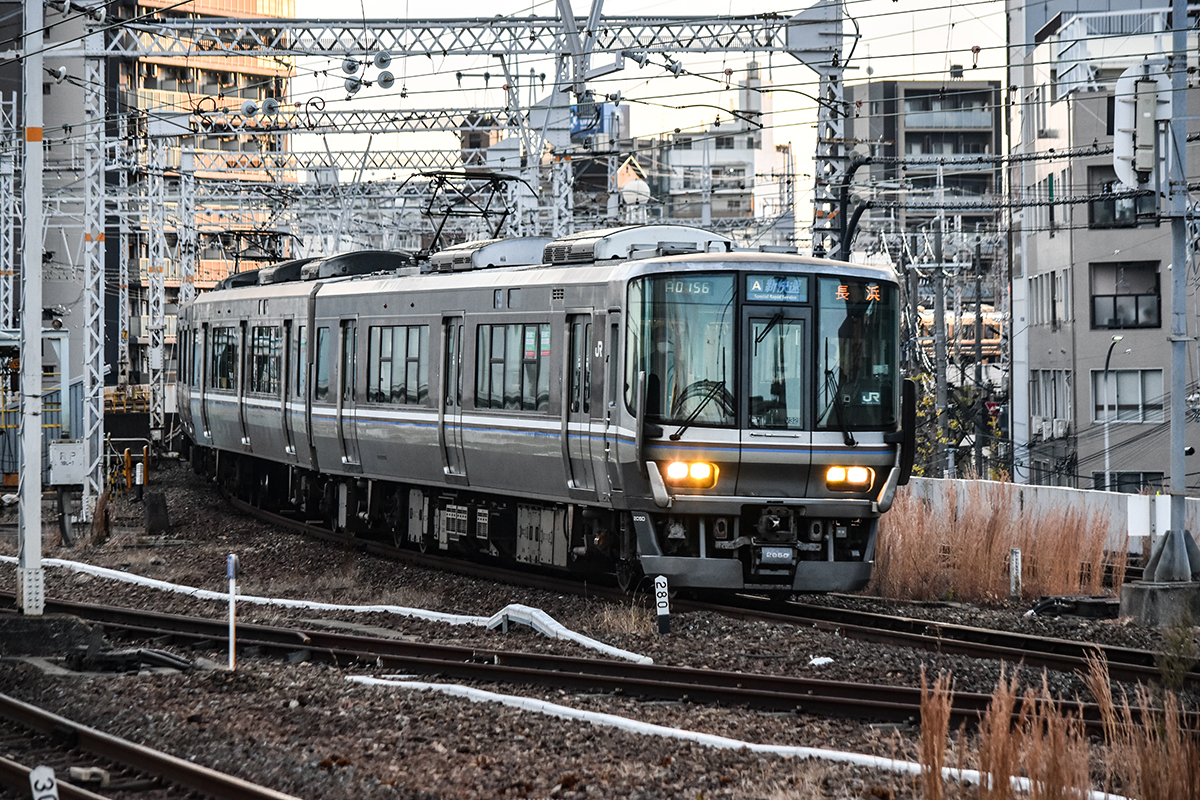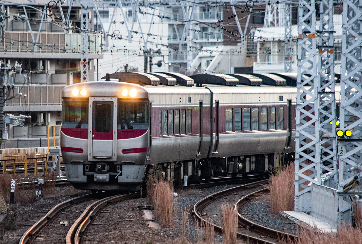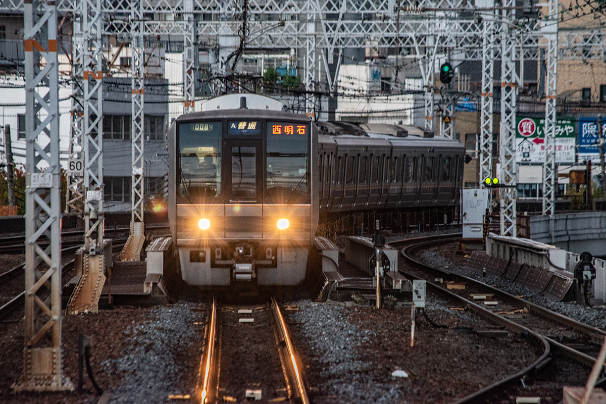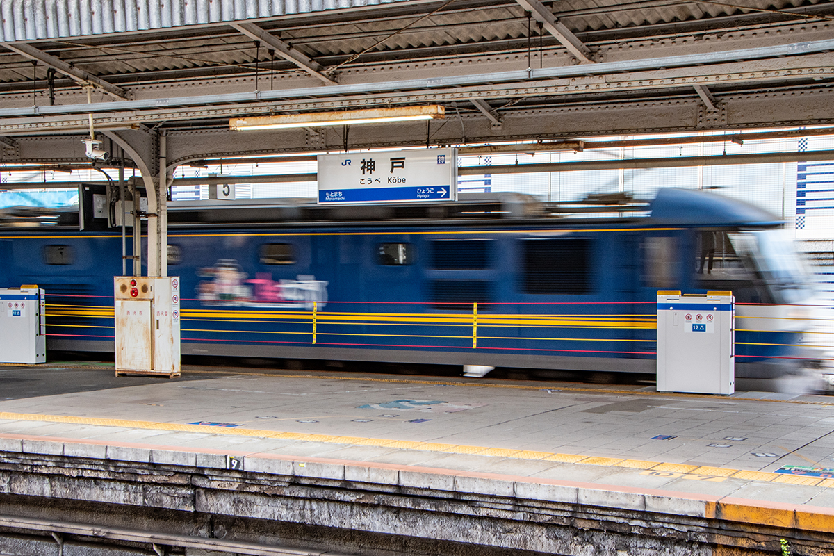 東海道・山陽本線 神戸 東海道・山陽本線 2022.12.232025.12.06 神戸駅は、南北に位置する、地図で言えば上下に縦になっている。だから前後の線路がカーブしてくるので、列車自体は良い感じで走ってくる。また、夕方には太陽の光が側面に当たるので光の移ろいの変化がある。しかし、いかんせん現代の線路の常で障害物が多い。東海道本線、山陽本線の終点起点であり、かつて寝台急行「銀河」などが発着した1番線ホームも残っていたりと国鉄時代の風情が残っている。
