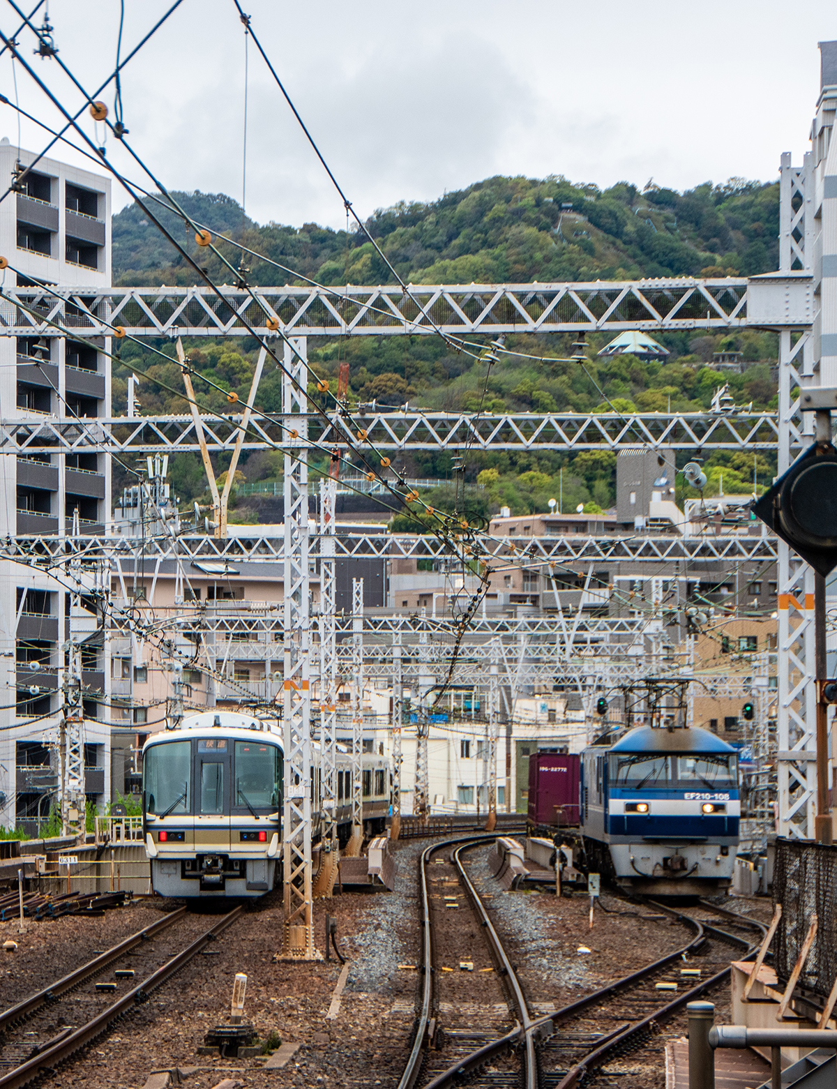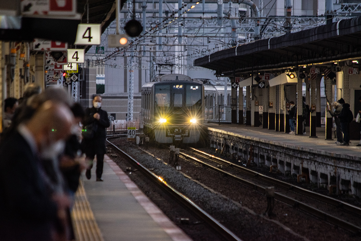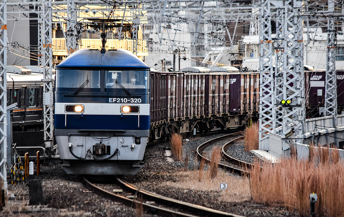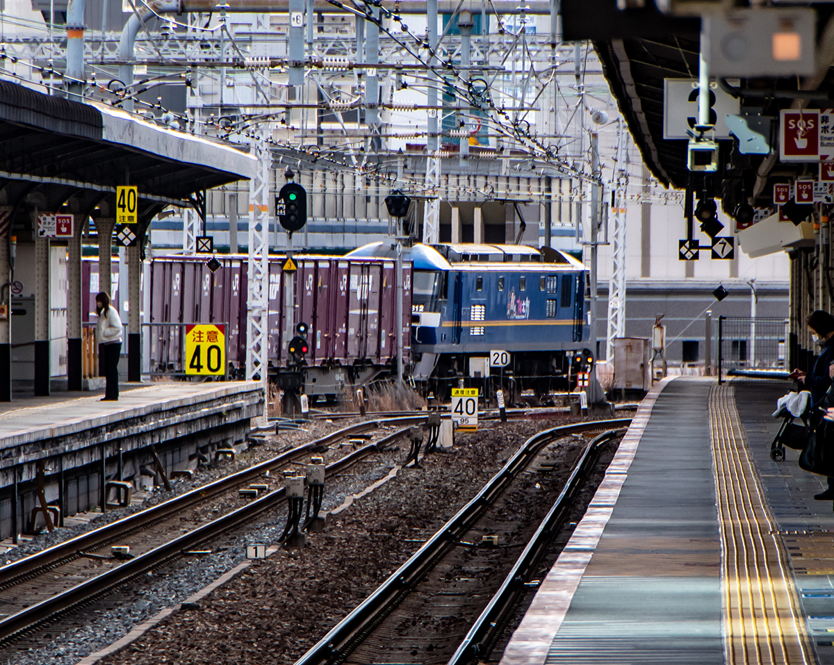 東海道・山陽本線 神戸 東海道・山陽本線 2022.12.232025.12.06 神戸駅は、南北に位置する、地図で言えば上下に縦になっている。だから前後の線路がカーブしてくるので、列車自体は良い感じで走ってくる。また、夕方には太陽の光が側面に当たるので光の移ろいの変化がある。しかし、いかんせん現代の線路の常で障害物が多い。東海道本線、山陽本線の終点起点であり、かつて寝台急行「銀河」などが発着した1番線ホームも残っていたりと国鉄時代の風情が残っている。