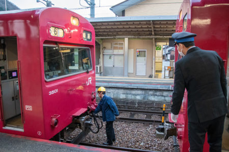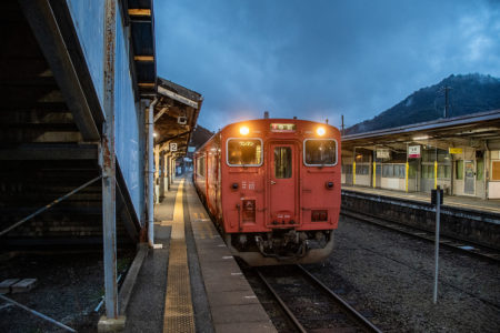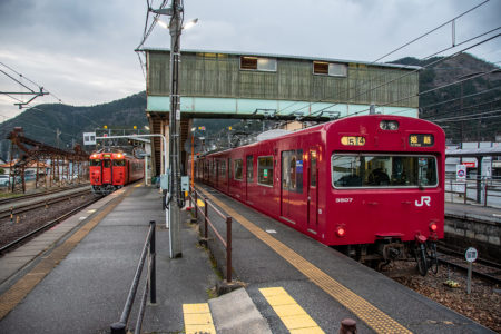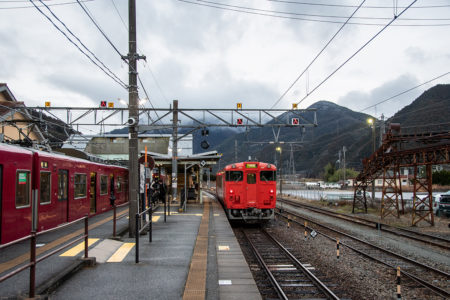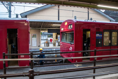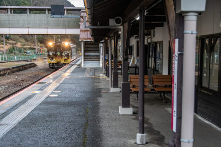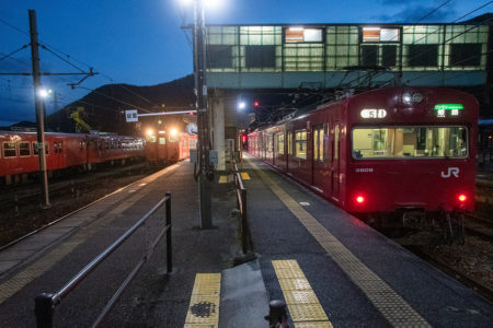 天気予報で夜中に雪マークだったので朝イチの雪景色を期待して行ったが山の上にはうっすらと雪が被っていたものの、平野部はまったくなし。長谷で降りるか和田山まで行くか迷ったが、とりあえず長谷で降りることに。