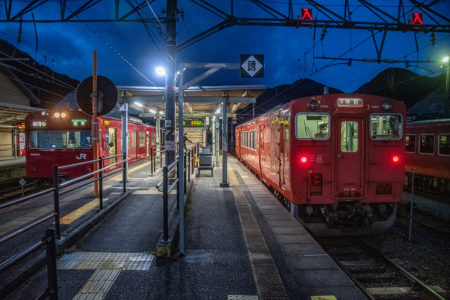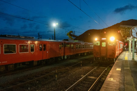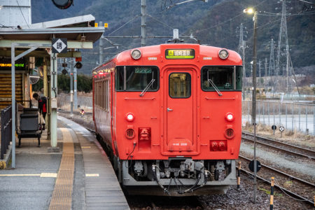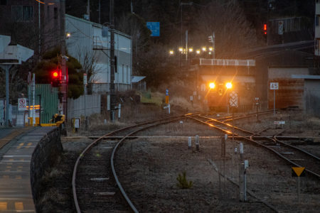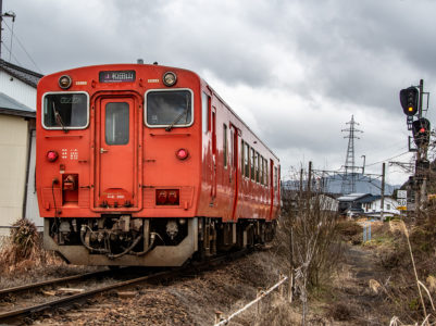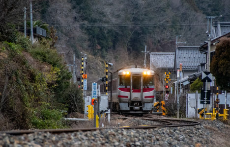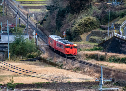 その後、竹田に移動して数本撮ったが途中で雨が降り出し、時間も時間なので撤収してきた。寺前でかにカニはまかぜを取る予定だったが、どうせなら生野の跨線橋のところで撮ることにした。雪がないと中途半端な風景になってしまうのは仕方がない。そのためか、普段なら必ず見かける鉄道ファンに1人も出会わなかった(笑)