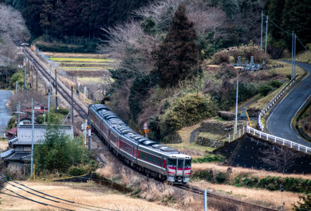 直後に寺前方面へ行くバスがあったのだが乗り外し、徒歩で峠地区まで行くことにした。俯瞰してもやはり雪はなく、はまかぜ他数本を撮って和田山へ。