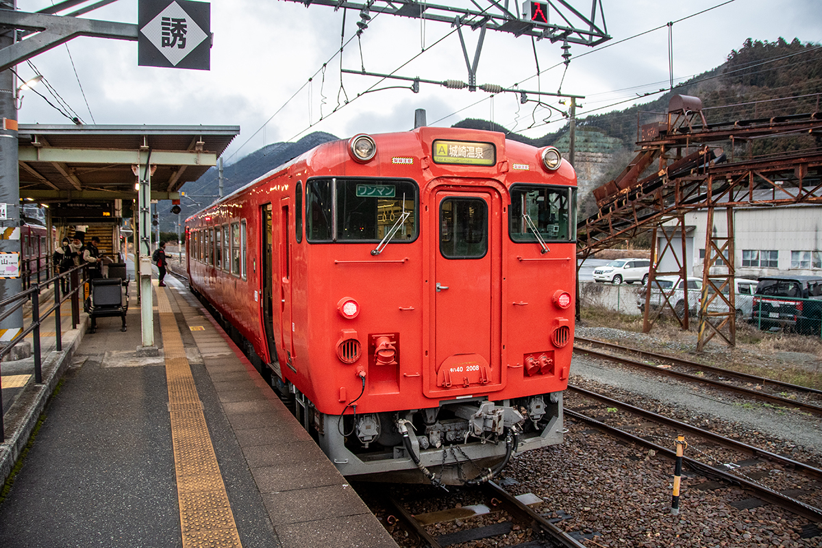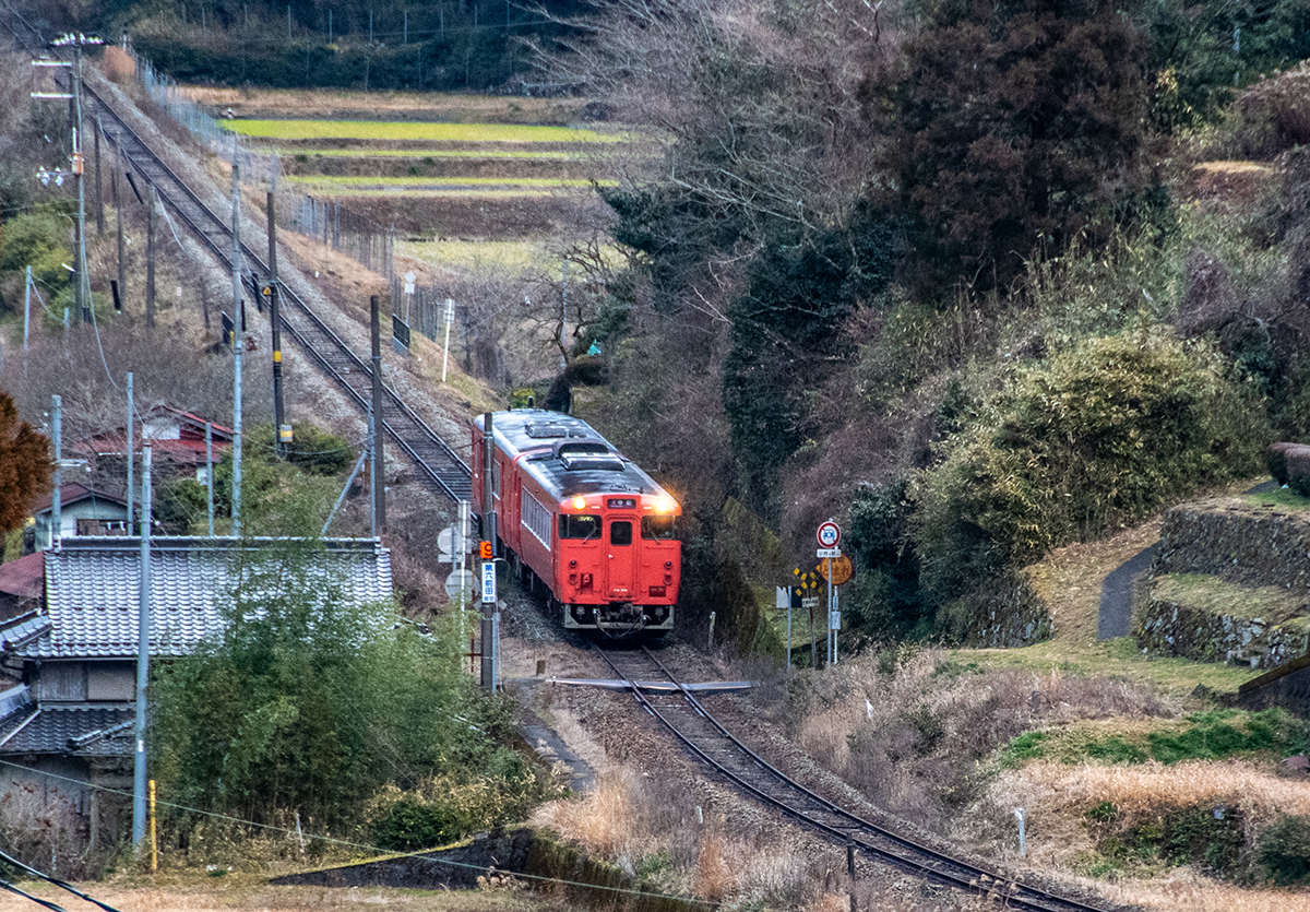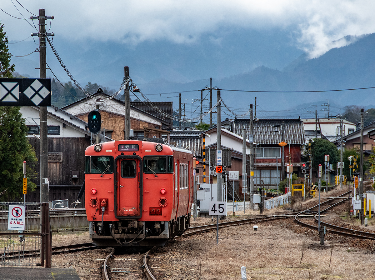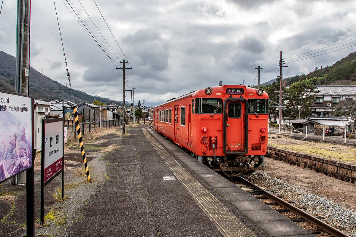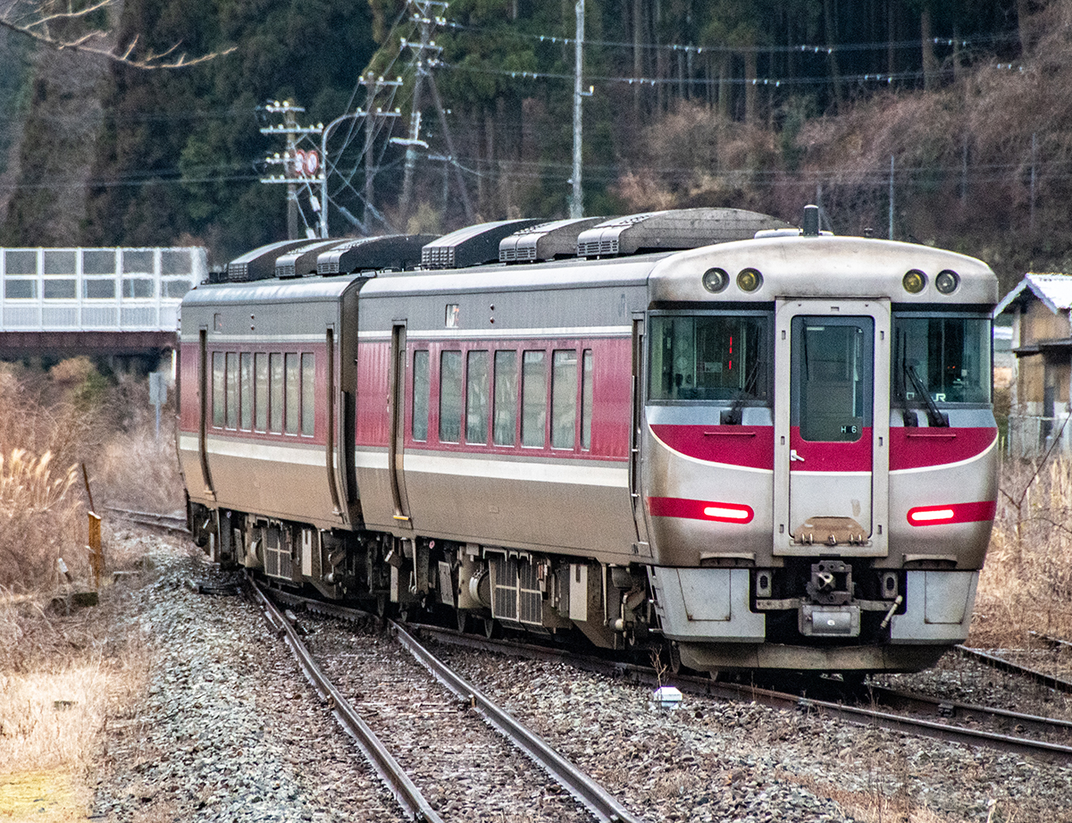 その後、竹田に移動して数本撮ったが途中で雨が降り出し、時間も時間なので撤収してきた。寺前でかにカニはまかぜを取る予定だったが、どうせなら生野の跨線橋のところで撮ることにした。雪がないと中途半端な風景になってしまうのは仕方がない。そのためか、普段なら必ず見かける鉄道ファンに1人も出会わなかった(笑)