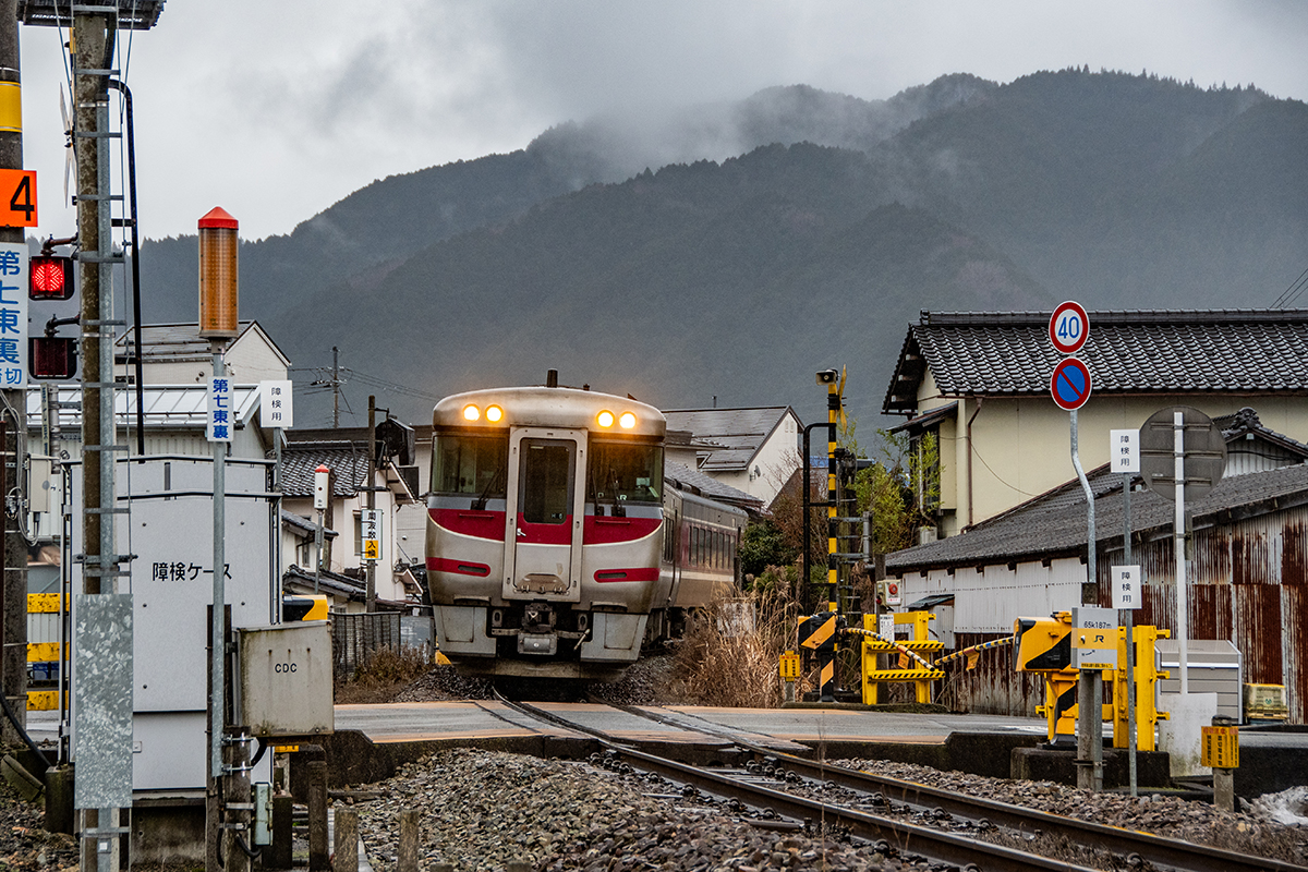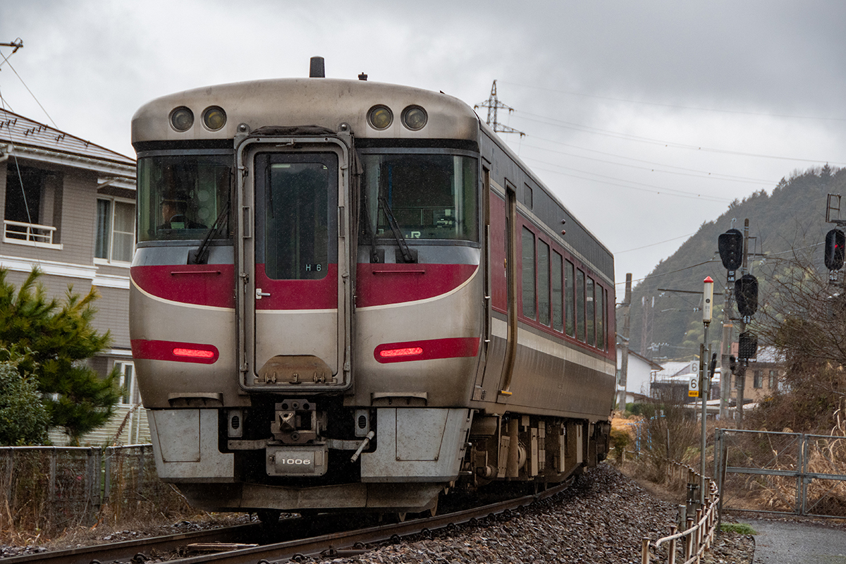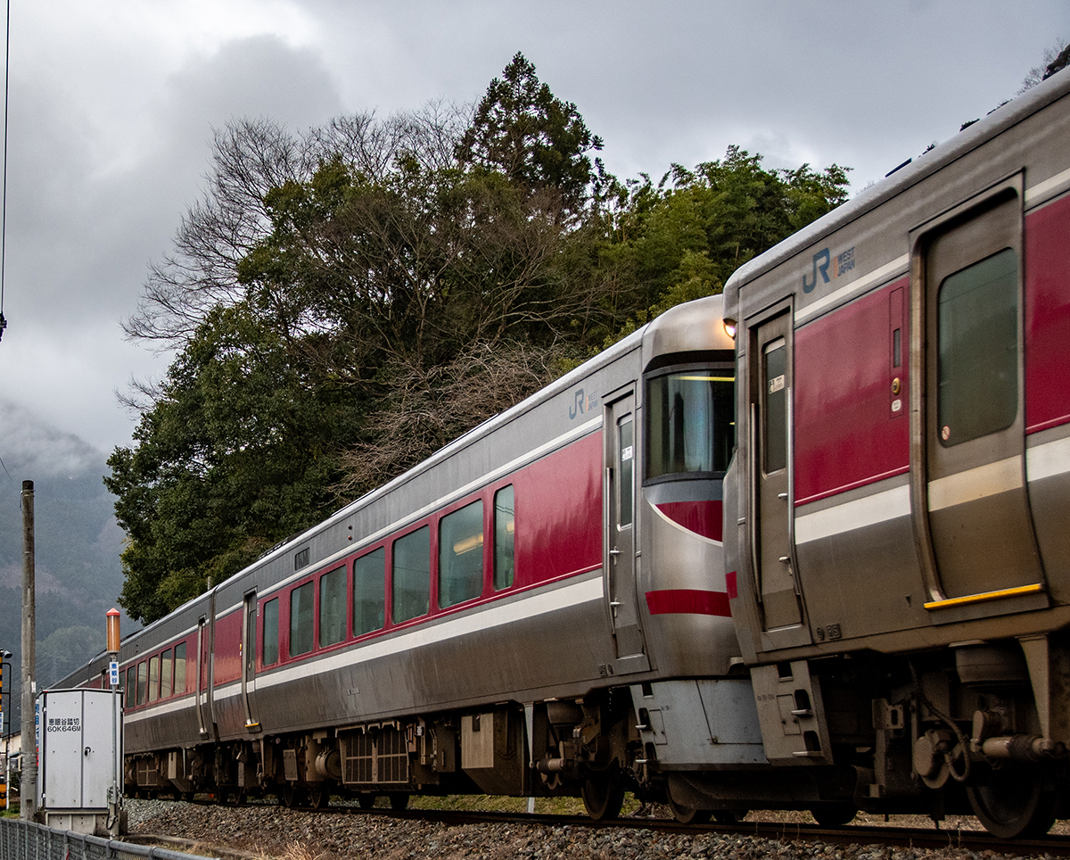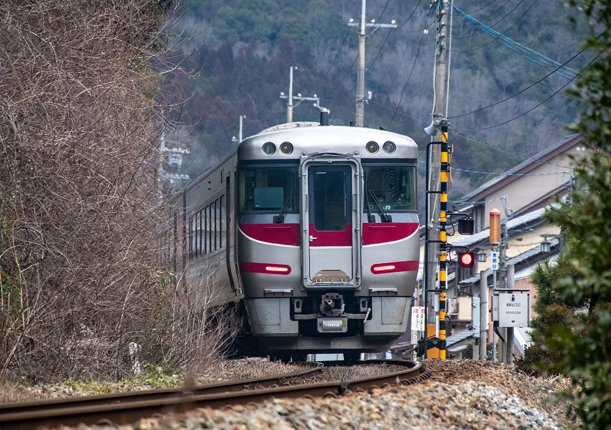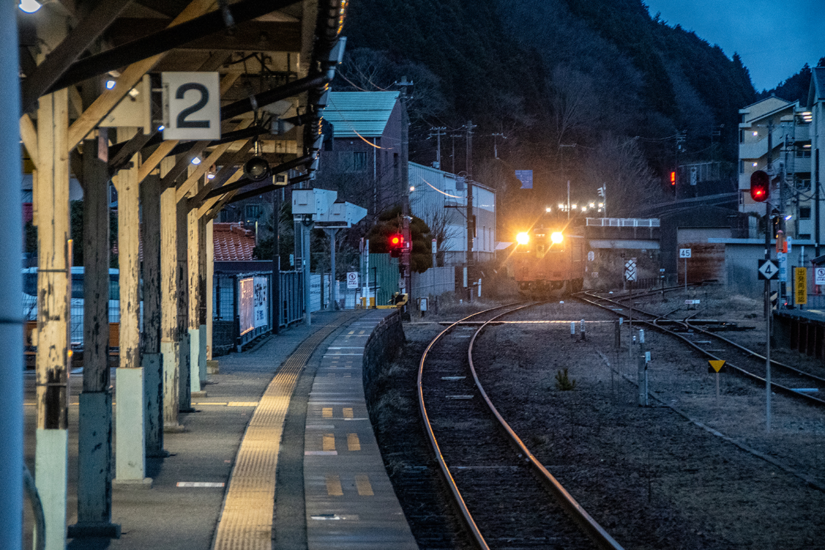 その後、竹田に移動して数本撮ったが途中で雨が降り出し、時間も時間なので撤収してきた。寺前でかにカニはまかぜを取る予定だったが、どうせなら生野の跨線橋のところで撮ることにした。雪がないと中途半端な風景になってしまうのは仕方がない。そのためか、普段なら必ず見かける鉄道ファンに1人も出会わなかった(笑)
