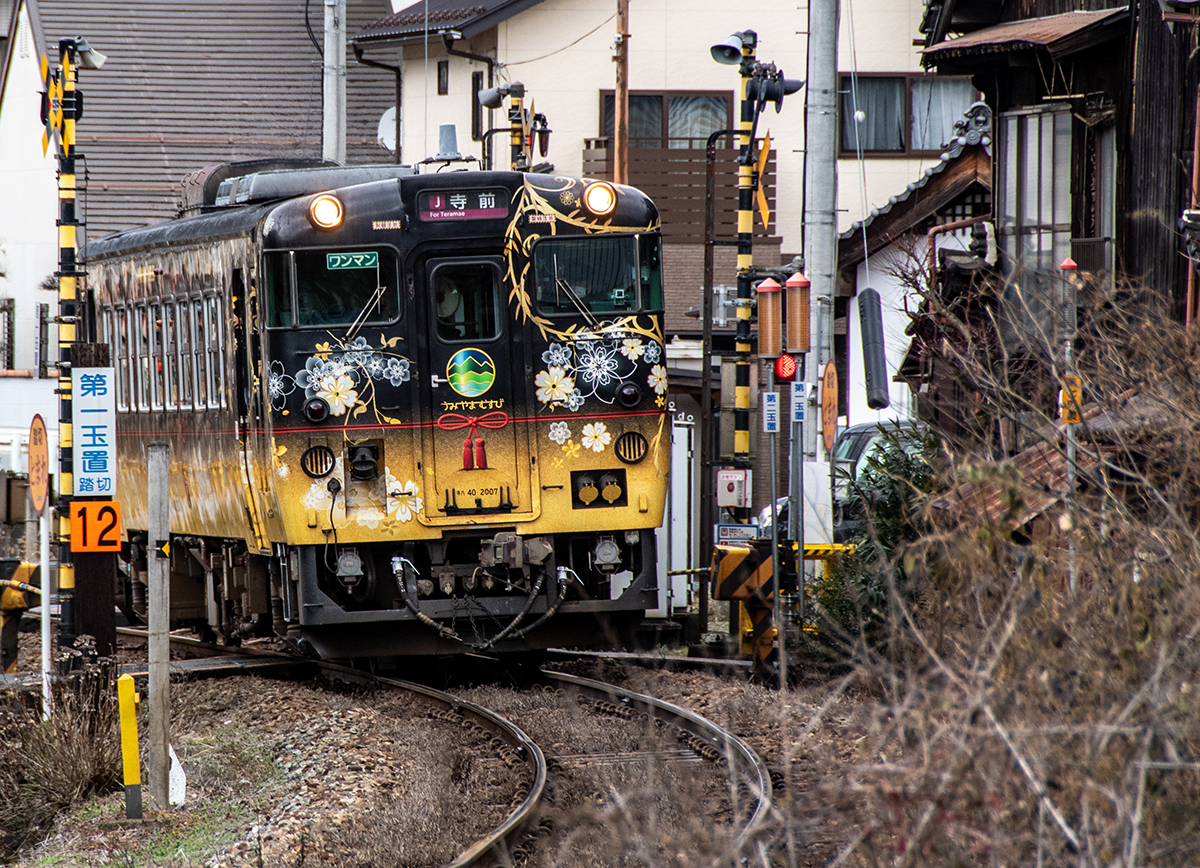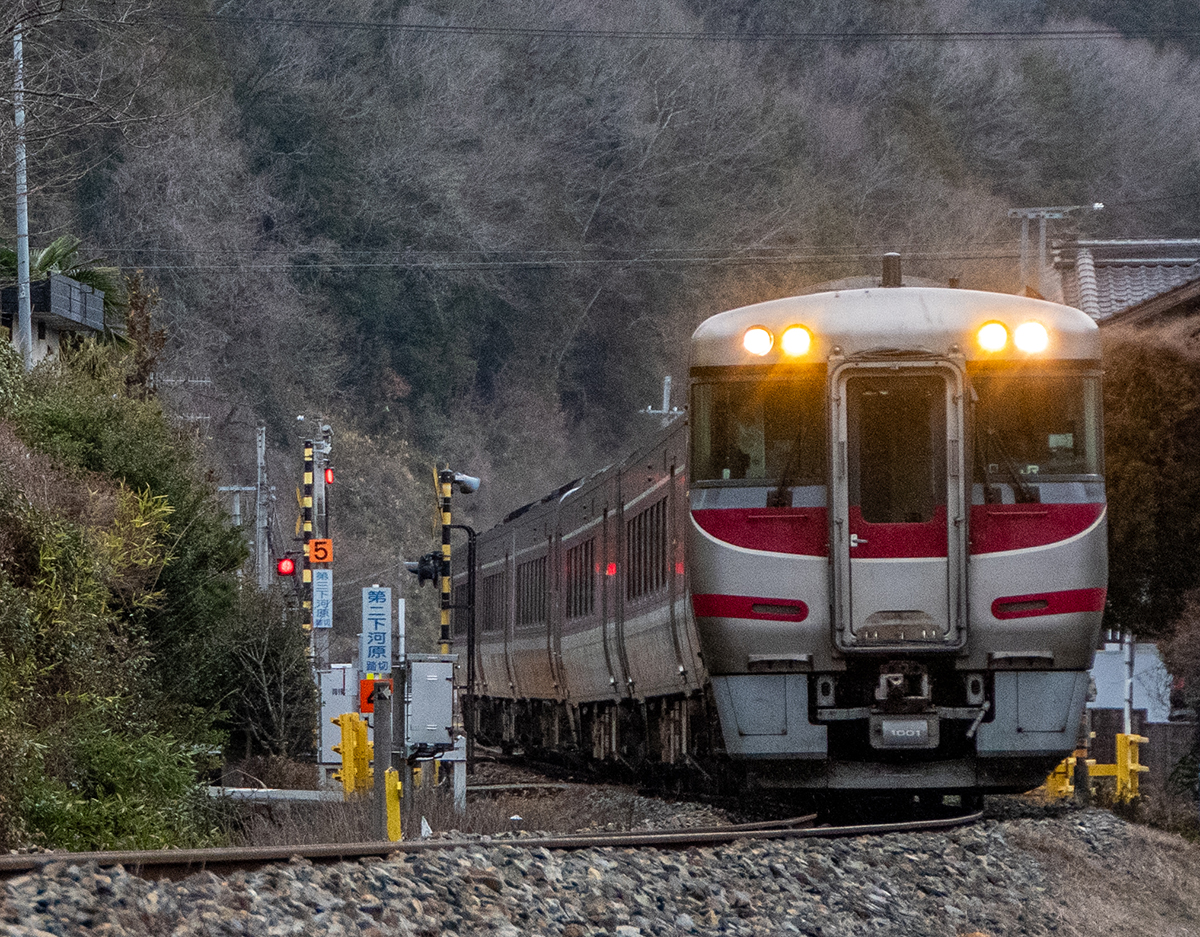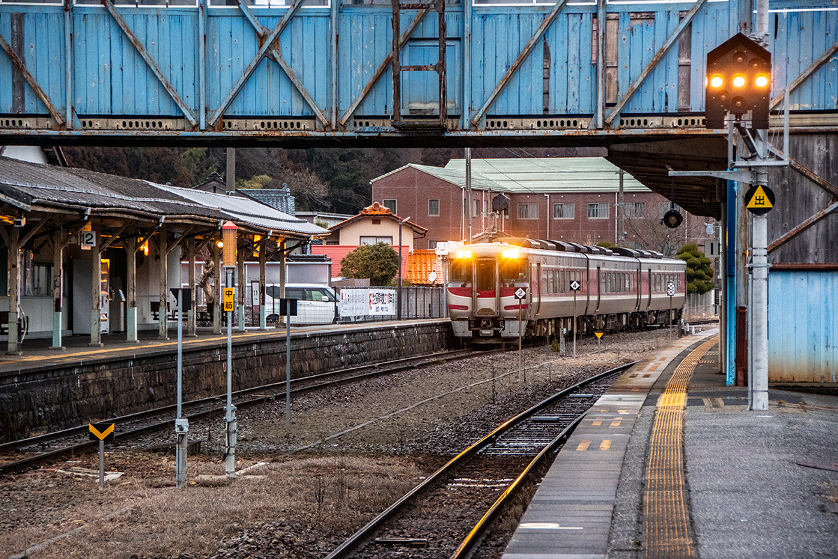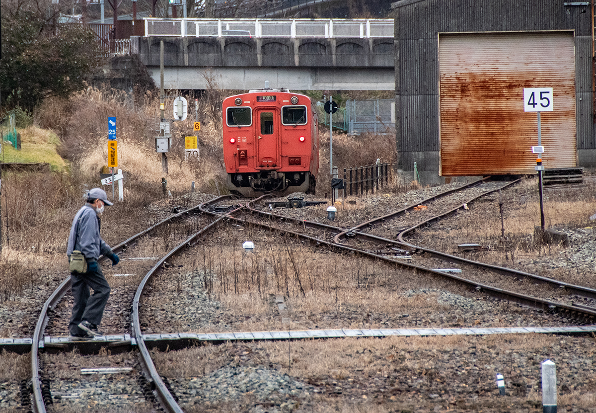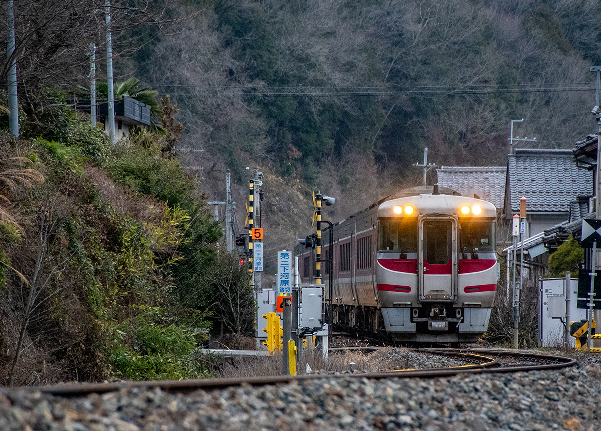 その後、竹田に移動して数本撮ったが途中で雨が降り出し、時間も時間なので撤収してきた。寺前でかにカニはまかぜを取る予定だったが、どうせなら生野の跨線橋のところで撮ることにした。雪がないと中途半端な風景になってしまうのは仕方がない。そのためか、普段なら必ず見かける鉄道ファンに1人も出会わなかった(笑)