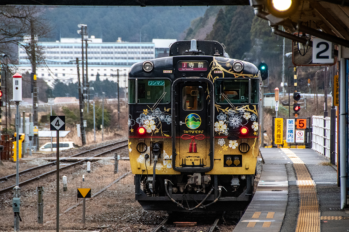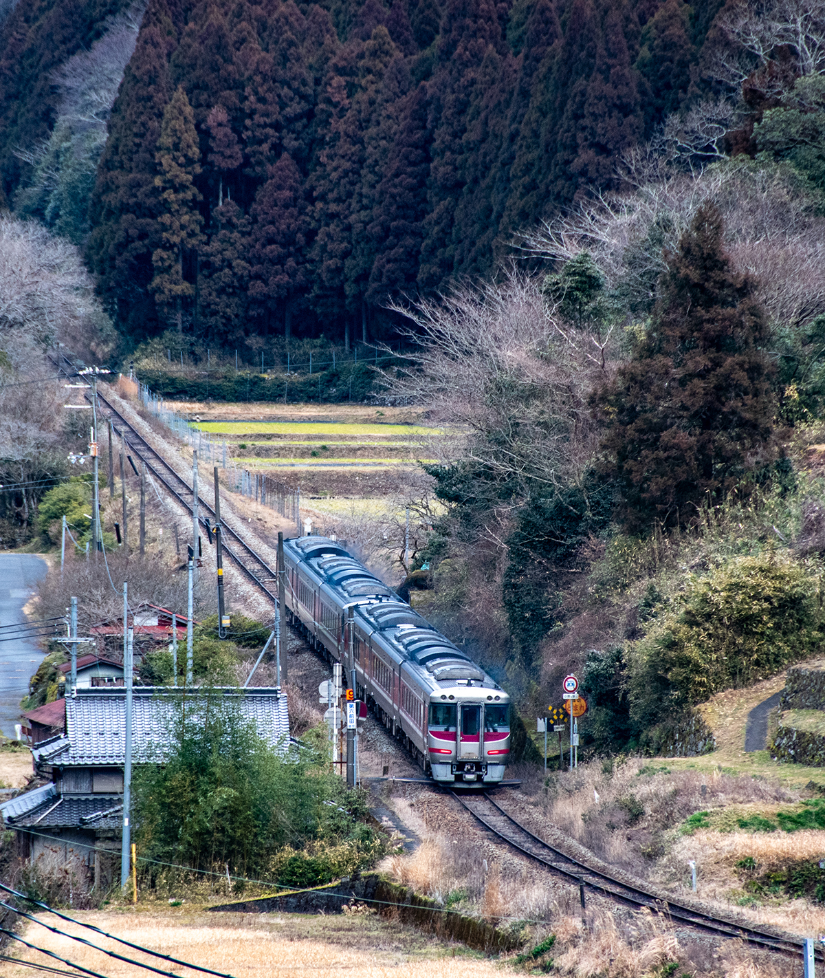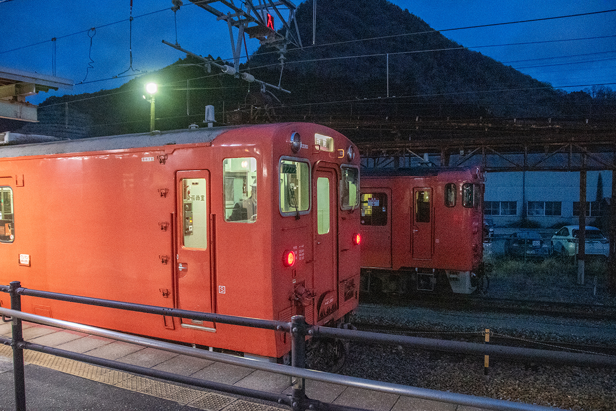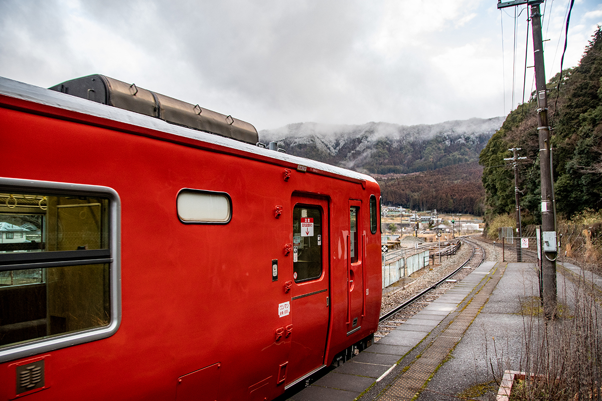 天気予報で夜中に雪マークだったので朝イチの雪景色を期待して行ったが山の上にはうっすらと雪が被っていたものの、平野部はまったくなし。長谷で降りるか和田山まで行くか迷ったが、とりあえず長谷で降りることに。