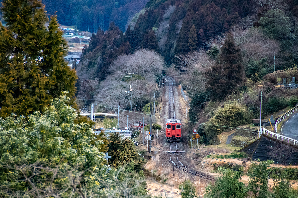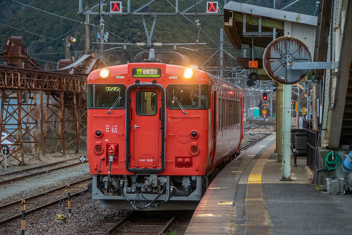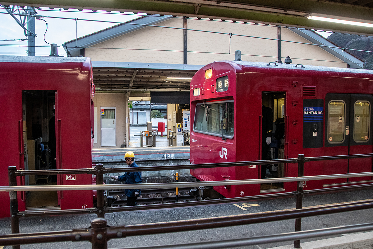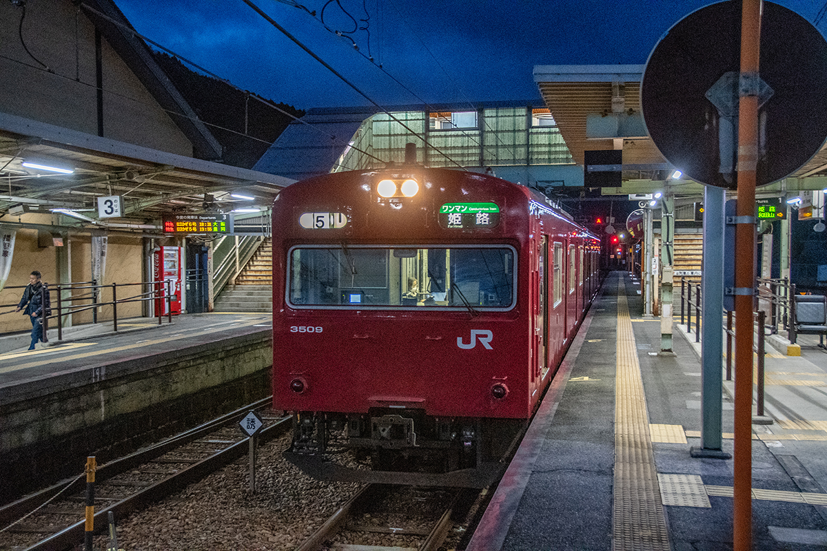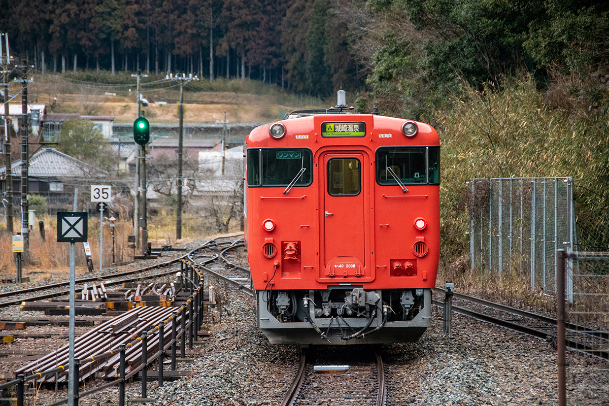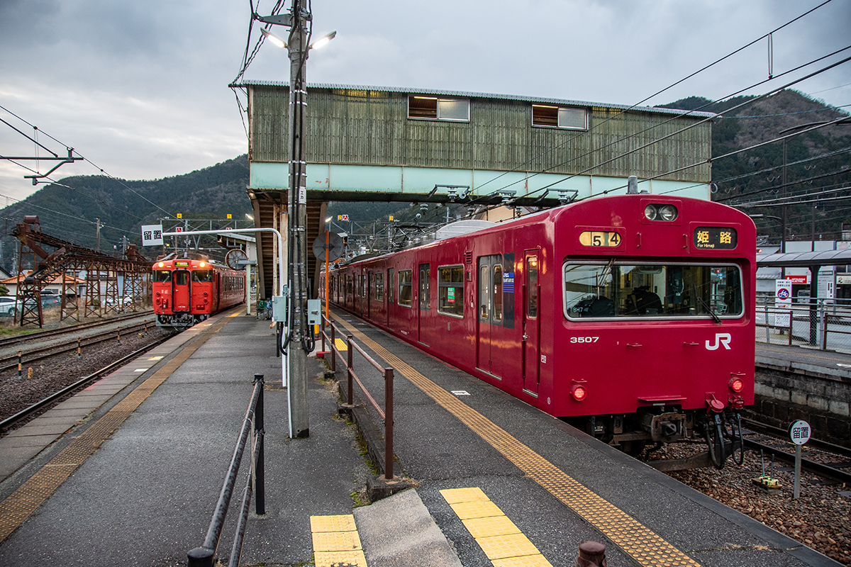 直後に寺前方面へ行くバスがあったのだが乗り外し、徒歩で峠地区まで行くことにした。俯瞰してもやはり雪はなく、はまかぜ他数本を撮って和田山へ。