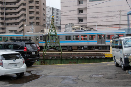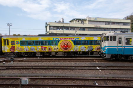 徳島駅の外れに陸橋があり、そこから駅のヤードが良く見えた。関西だとこういう陸橋も高い柵や網が張ってあって見えにくが、ここは柵は低くて良く見える。ローカル線的とは言えやはり県庁所在地の徳島、3つの路線の起点で頻繁に列車が行き来する。駅のヤードにはディーゼルカーがズラ〜っと並ぶ。SL時代の転車台もまだ使われているようだった。