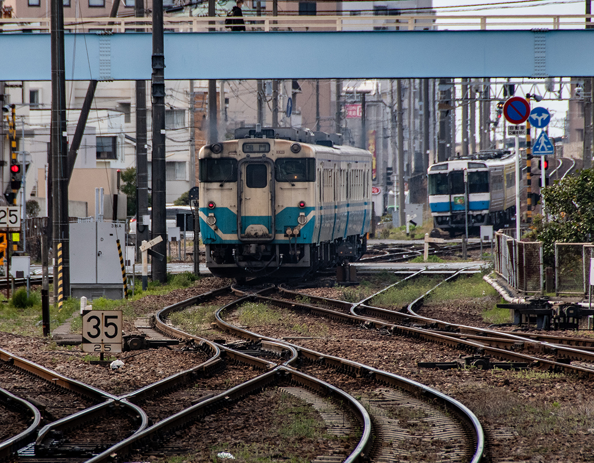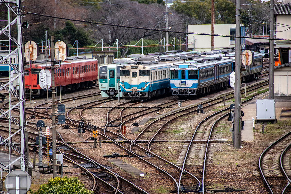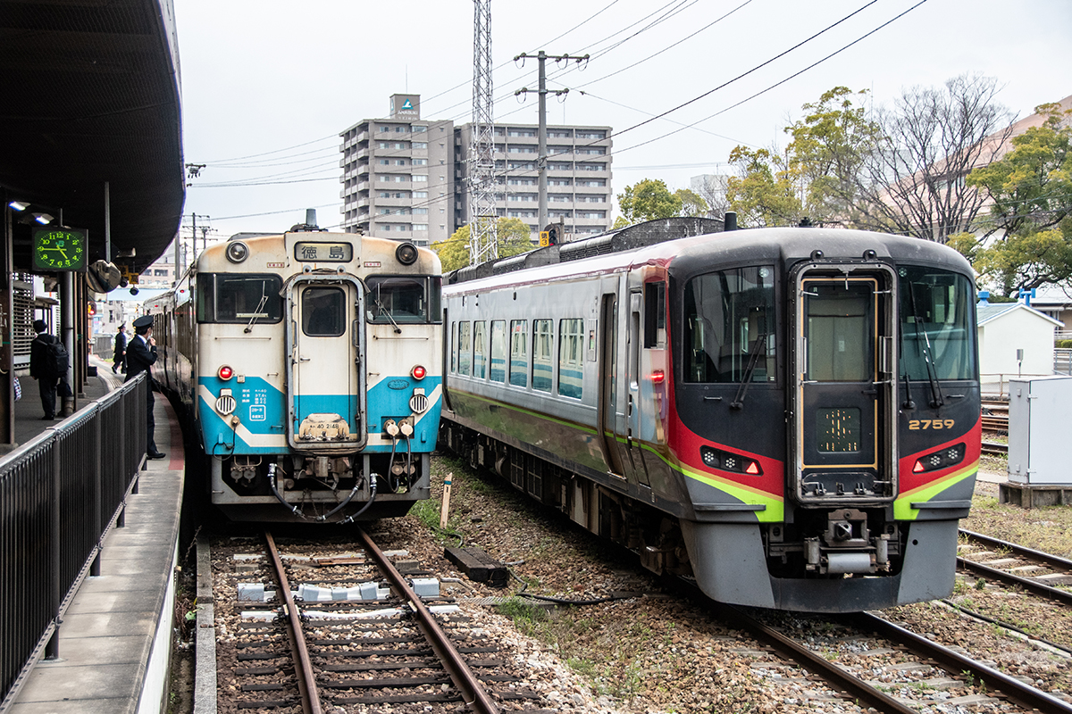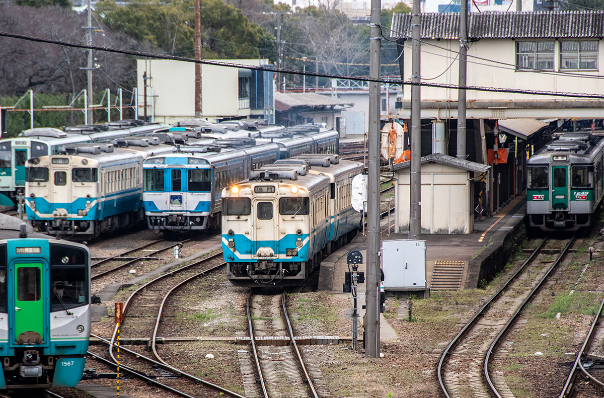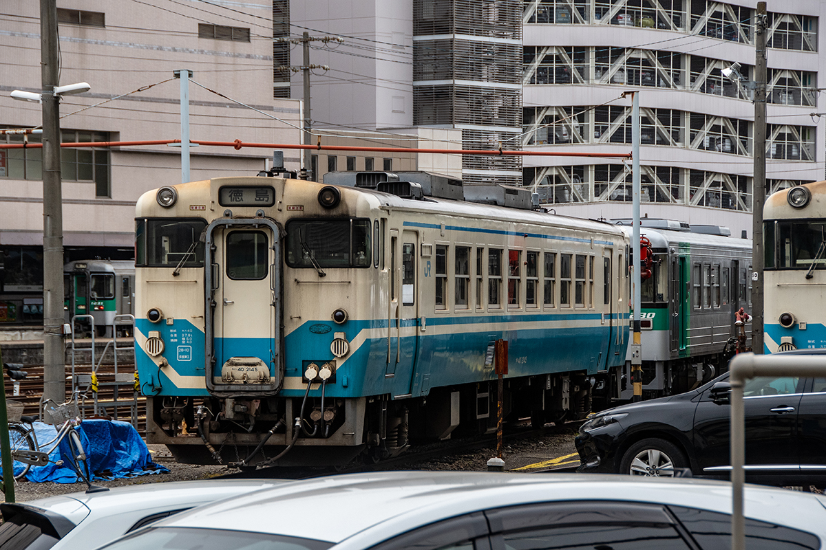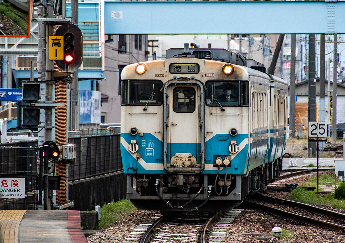 徳島駅は、高徳線、徳島線、鳴門線、牟岐線の列車が発着し、車両ヤードを備えている。キハ40系が走るの貴重なエリアでもある。とはいえ、もう数年でなくなってしまいそうな感じ。調べてみるとその運用はかなり減っているようで、朝夕のラッシュ時に補助的に投入されているようだ。今回は、仕事でたまたま赴いたため、午後から夕方までカメラ一台で撮って来ただけになった。